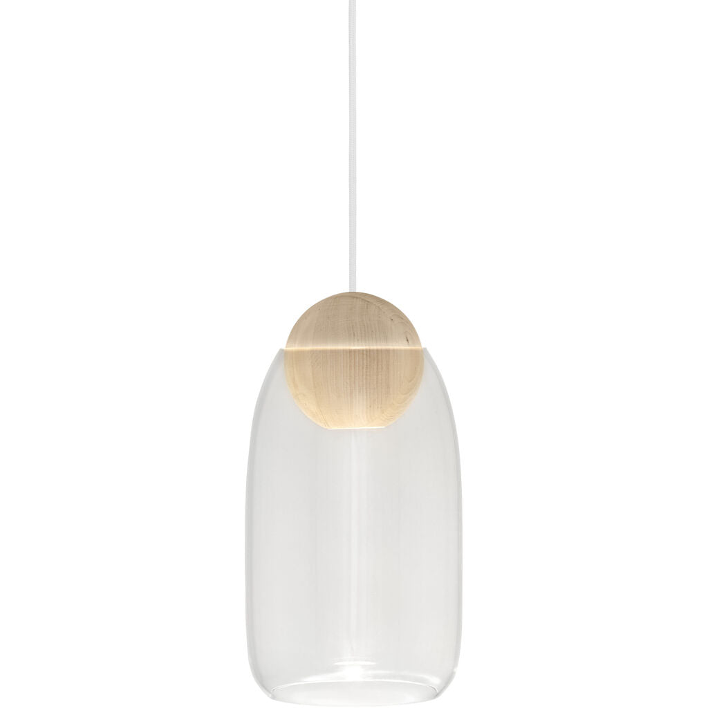 Liuku is a contemporary pendant lamp designed by Finnish designer Maija Puoskari. Liuku is consisting of a coloured mouth-blown glass shade nestling over an FSC® certified linden wood base in two different shapes. Additionally, the wooden base can be used on its own as a single pendant, or to create rows and clusters for both residential and commercial environments.