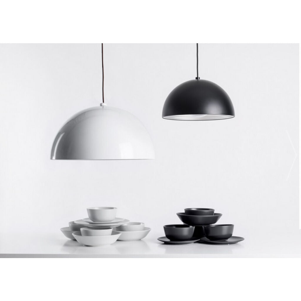 Seed Design's simple ideologies and precise craftsmanship come together with the Dome Medium Pendant Lamp. Made with steel, the Dome features a clean silhouette, a dramatic oversized lampshade and is finished with a centric-circled aluminum reflector and bulb cover. The Dome Lamp will warm the ambiance of any room.