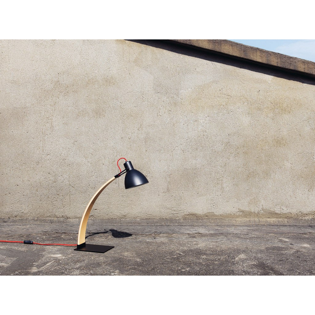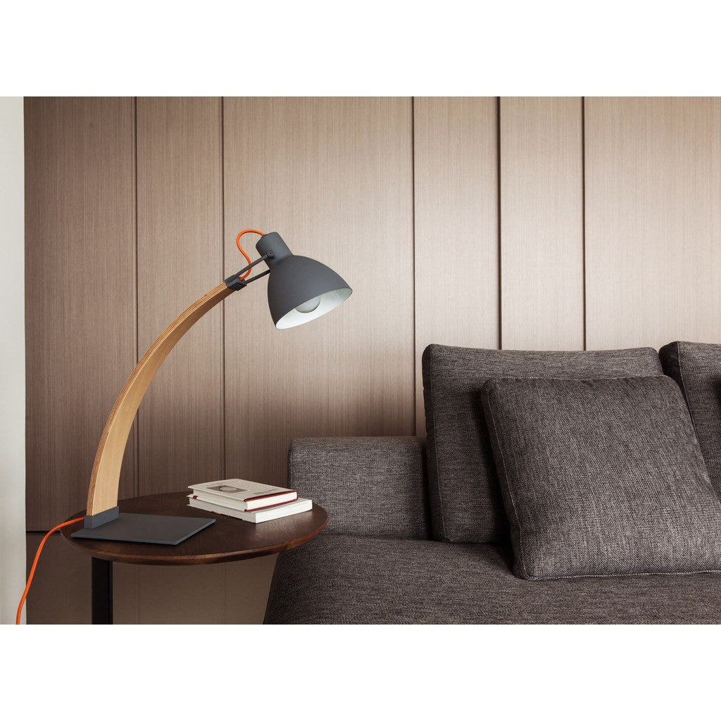 Seed Design crafts simple and elegant lighting solutions for your home. The Laito Wood Table Lamp in Dark Gray is made with Steel and Beech wood. Perfect for a desk or a side table, this lamp features a unique design that hides wires within the wooden arch.