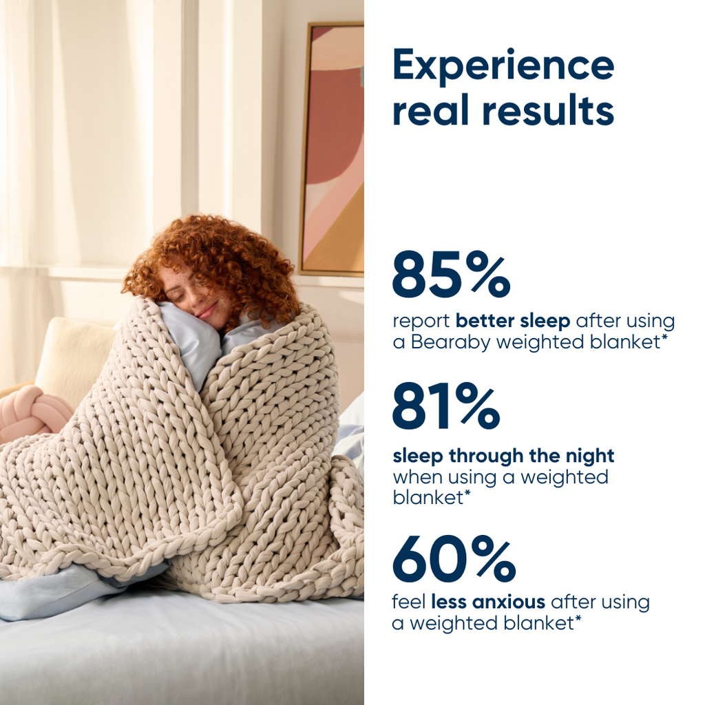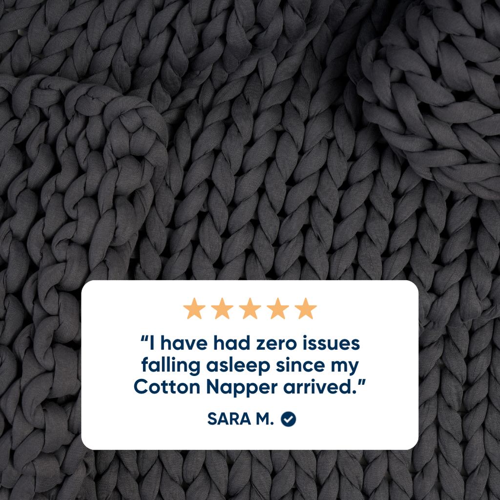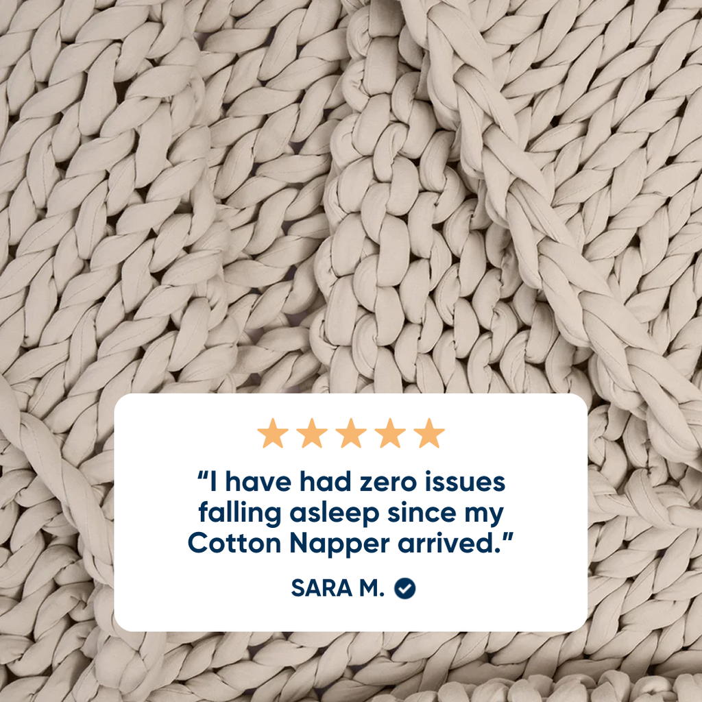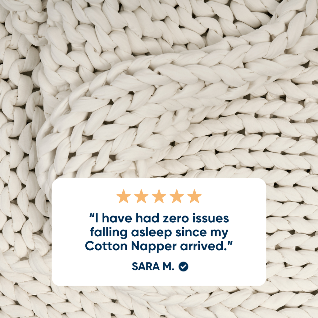 Our organic Cotton Napper is a knitted weighted blanket to help you fall asleep faster and feel calmer, naturally. Made of 100% organic cotton. Your Napper should be about 10% of your body weight.