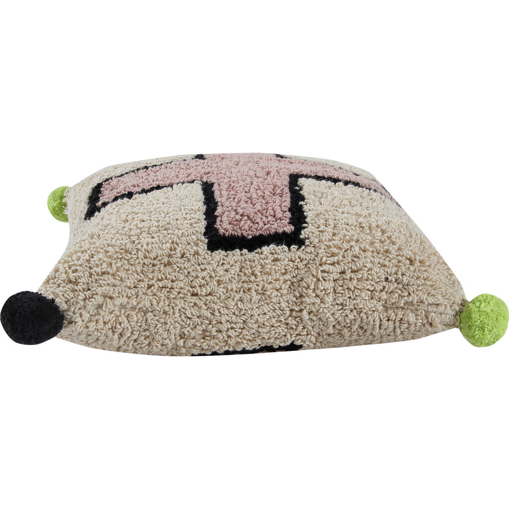 The trendiest Berber style! Cushion outer in 100% cotton and filling in 100% polyester, it is safe since it has no zippers or buttons. Square-shaped and with a large cross motif in the center, this cushion is simply original and elegant. The pompoms add a fun touch with its bright colors contrasting with its cream-colored background. Perfectly matches our Naador rug from the Morocco collection. Non-removable cover, easy to wash at home in a conventional washing machine.