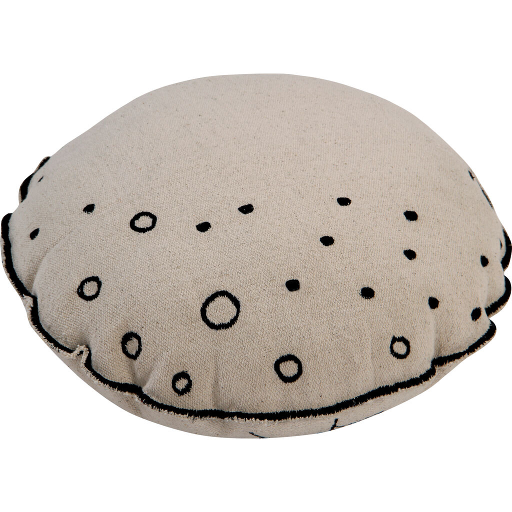 Inspired by the moon, the galaxy is one of the great inspirations of the season. A round cushion with an irregular border, with an exterior in compact 100% cotton fabric and 100% polyester interior, embroidered on the base (in the natural undyed color of the cotton) are circles that resemble the craters of the famous satellite. It is fun for a boy's or girl's room, and also for other locations such as the living room, couch, armchair, hammock, floor, bedrooms, etc. Machine washable without being uncovered, it has neither buttons nor zippers, which makes it child-friendly. In the same Galaxy collection discover the washable Milky Way and Universe rugs and the Galaxy wall hanging.