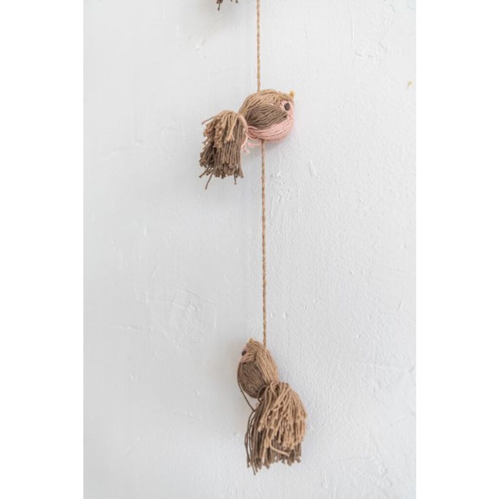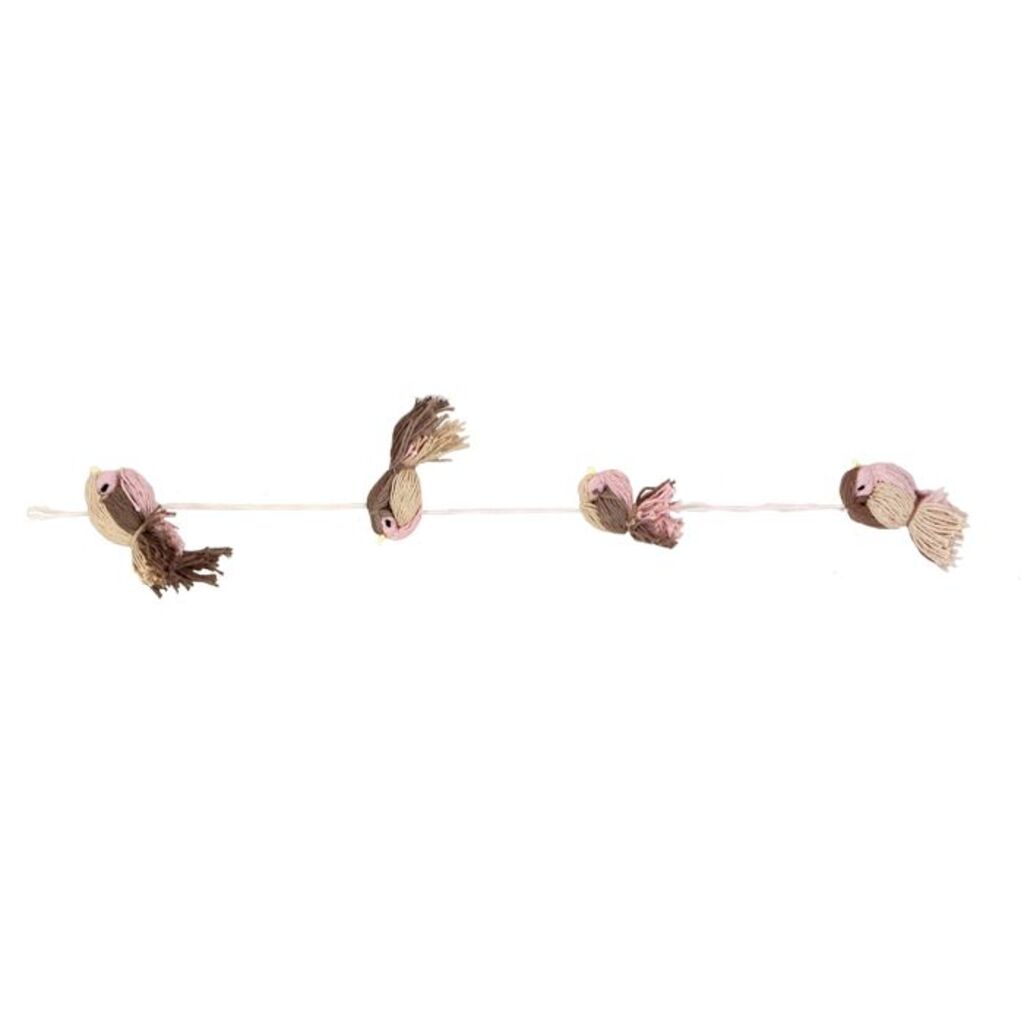 Bullfinches and sparrows and woodpeckers.The birds that inhabit the Mediterranean forest are colorful and varied. Their sweet song accompanies our walks with a happy melody. With this adorable garland and they will also come indoors to decorate the room! Handmade with tassels of cotton threads transformed into birds.
