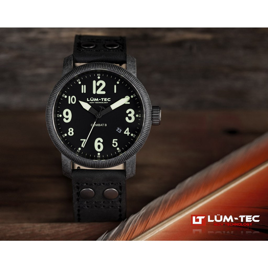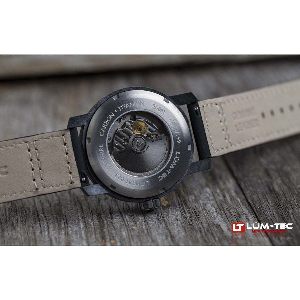Lum-Tec crafted the B23 Carbon Watch using their Maximum Darkness Visibility technology. Each Lum-Tec watch is finished with eight layers of ultra bright glowing Super-Luminova photo-luminescent material. Made with sapphire crystal, this watch is finished with clear double side anti-reflective coating. Complete with a black leather strap, this rugged watch is great for any occasion.