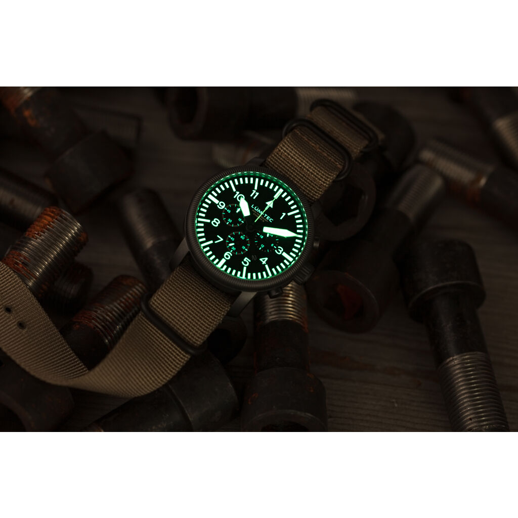 Take cover with the Lum-Tec Combat B44 watch. The high-quality watch is designed with an anti-shock movement mounting system and titanium gunmetal coating. The size of 22mm width and 43mm casing fits perfectly on your wrist. The heavy-grade nylon strap ensures comfortability and durability. Not only does the B44 have superior battery life, but the watch can achieve water resistance of up to 200 meters underwater. The reliability, durability, and aesthetics of the Combat B44 Chronograph watch is the perfect gift for him.