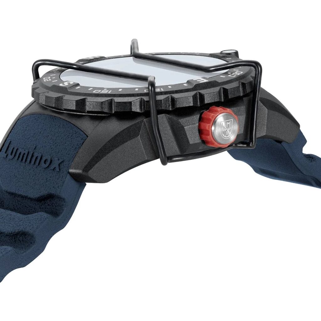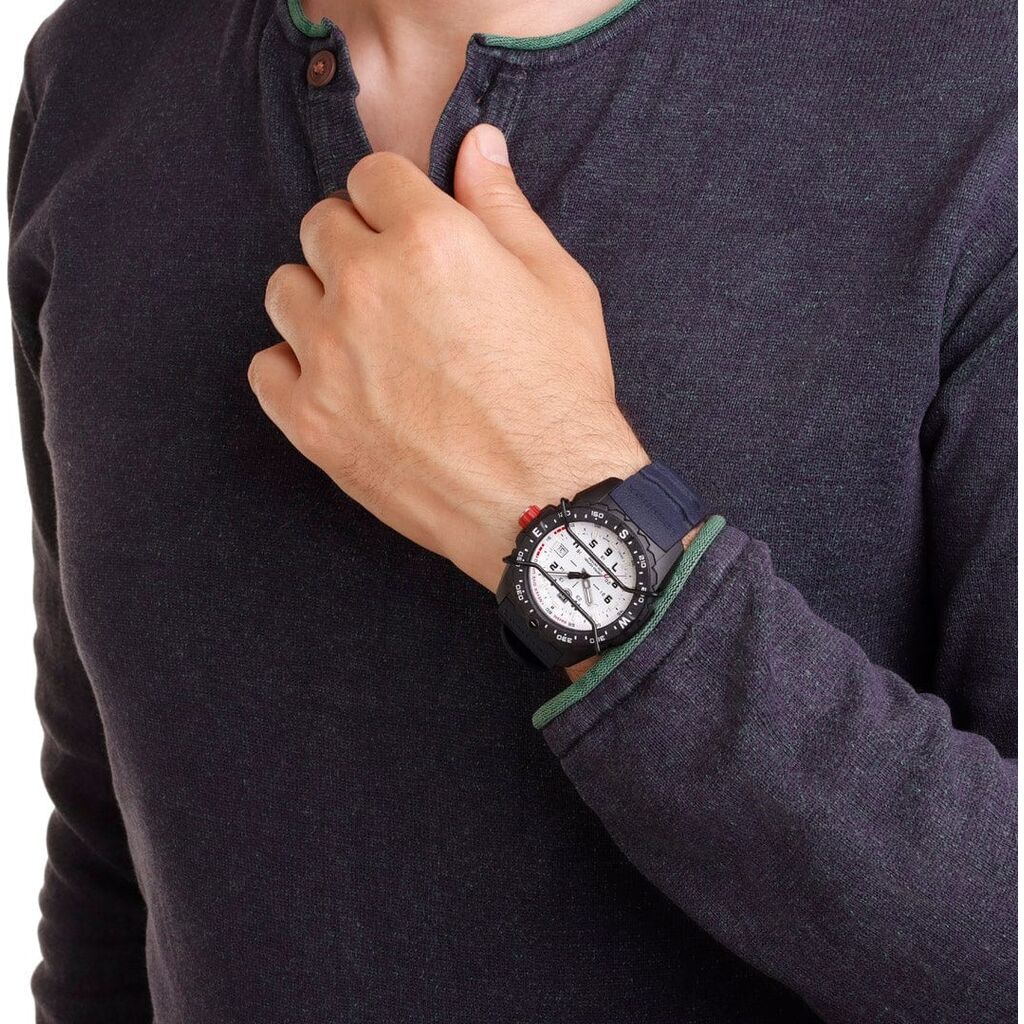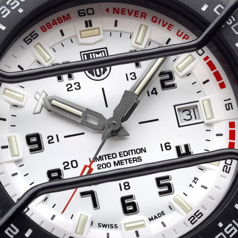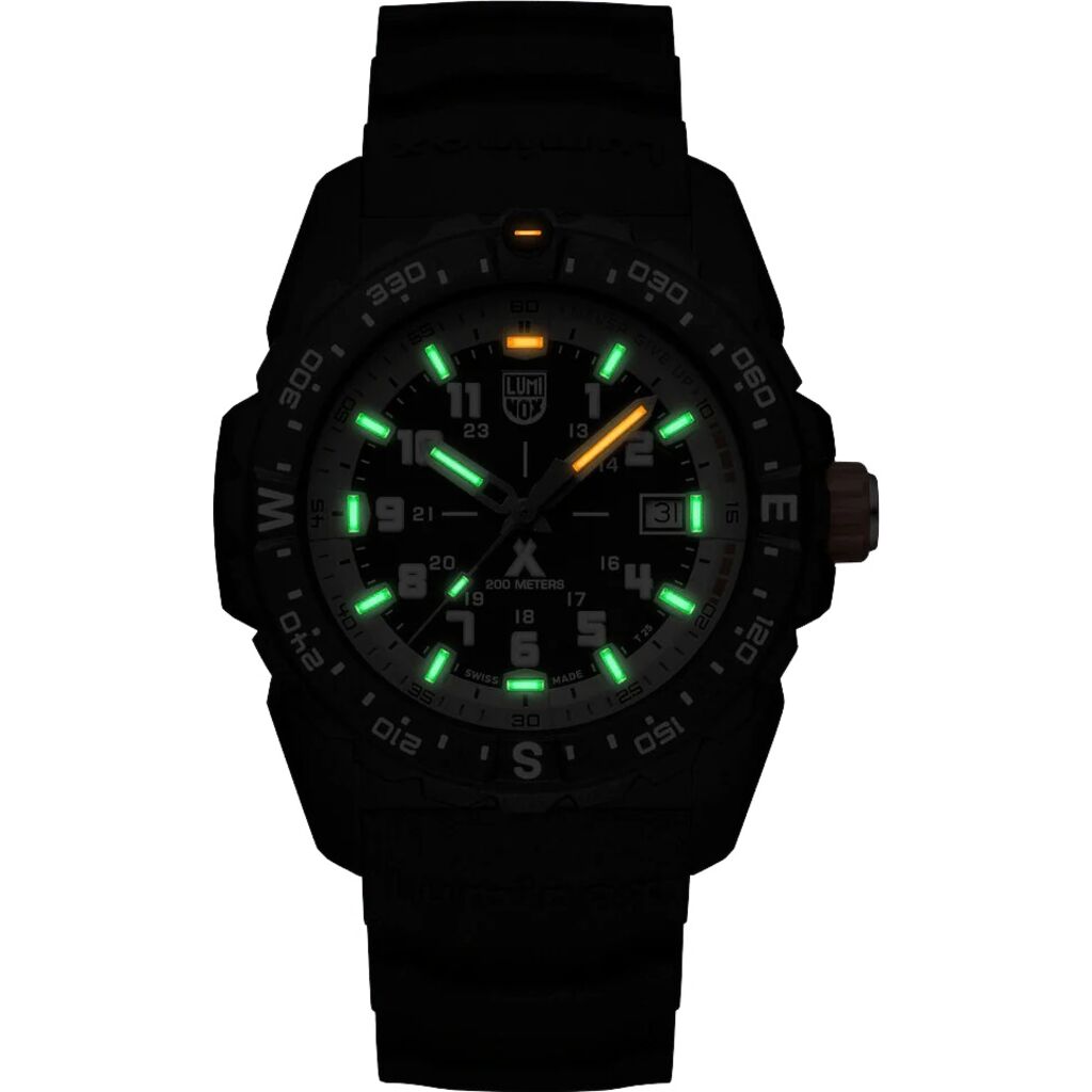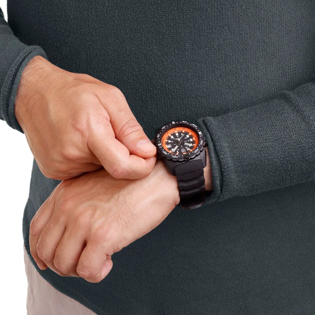 This Bear Grylls Mountain Series watch features a 43millimeter very lightweight CARBONOX™ case and bi-directional bezel, marked with cardinal points, alongside a sapphire crystal face with anti-reflective coating for increased readability. Bear Grylls signature is engraved on the case back and his famous motto ‘Never Give Up’ is inscribed around the edge of the dial. The signature Bear Grylls screw-in orange crown, orange dial outer ring and black integrated rubber strap, create unique design details.