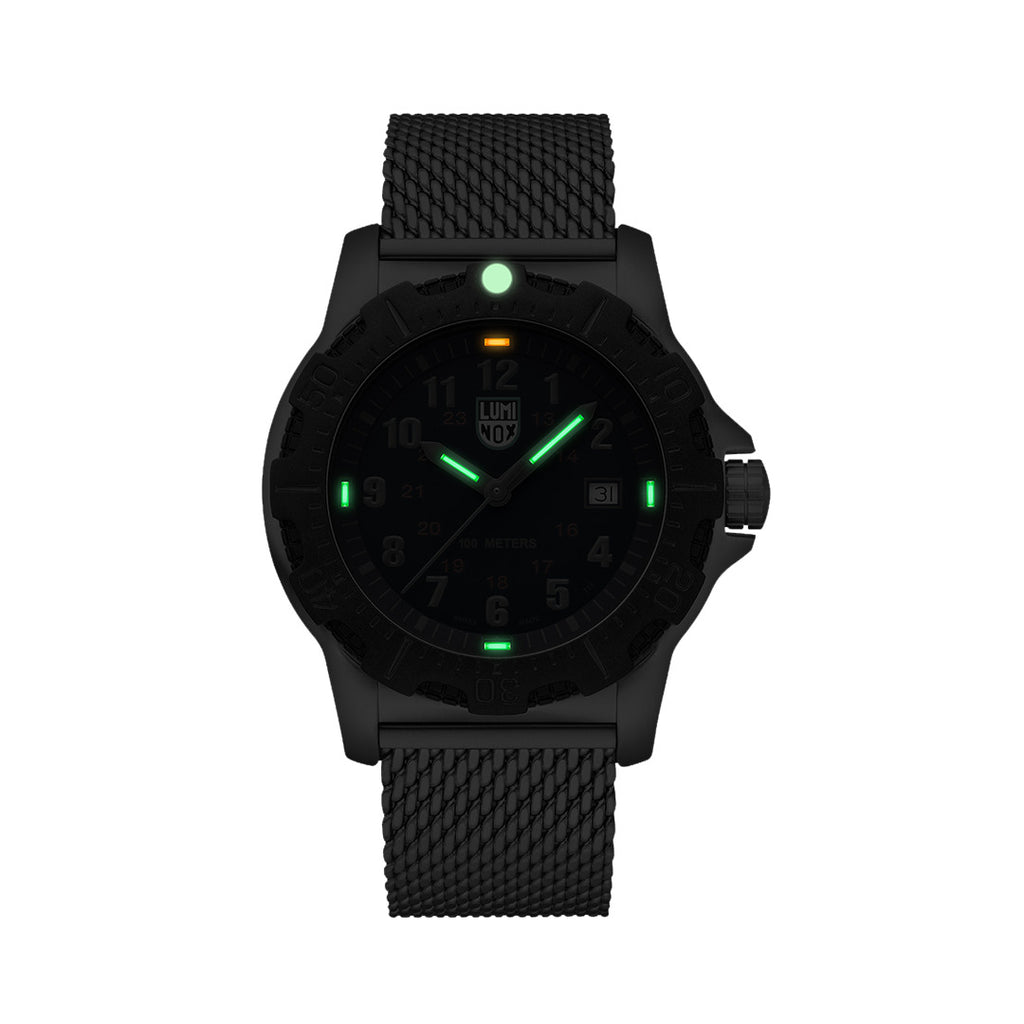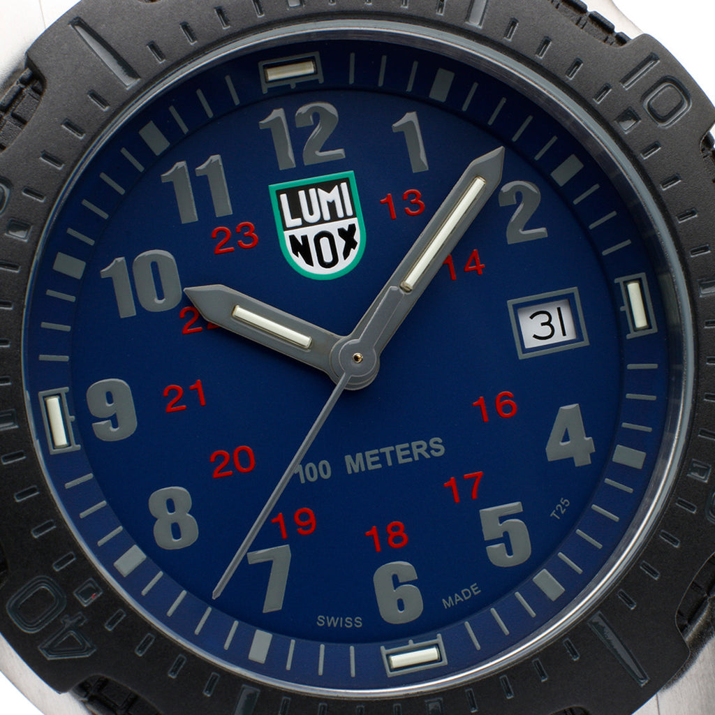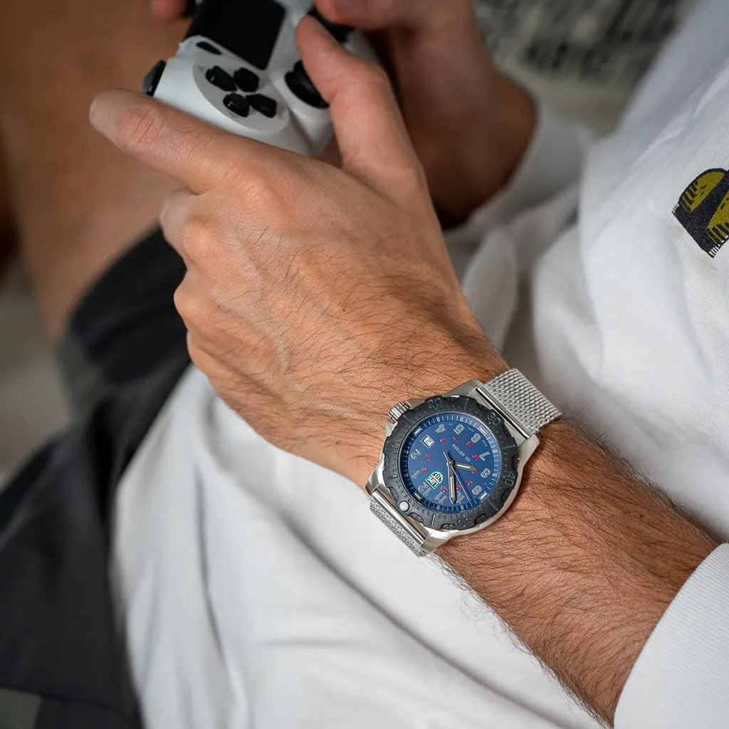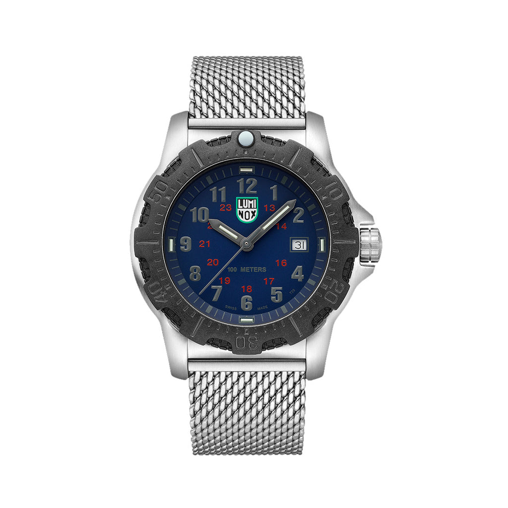 The Manta Ray Steel is durable, legible and specially designed for real world use. This model with a dark blue dial features a 45mm stainless steel case and caseback, as well as a CARBONOX™ unidirectional ratcheting bezel. Water resistant to 100 meters, it comes equipped with a stainless steel Mesh band adorned with a stainless steel signature buckle. Its proven Luminox Light Technology lighting system guarantees self-powered readability in the night. "Always Visible" for 25 years.