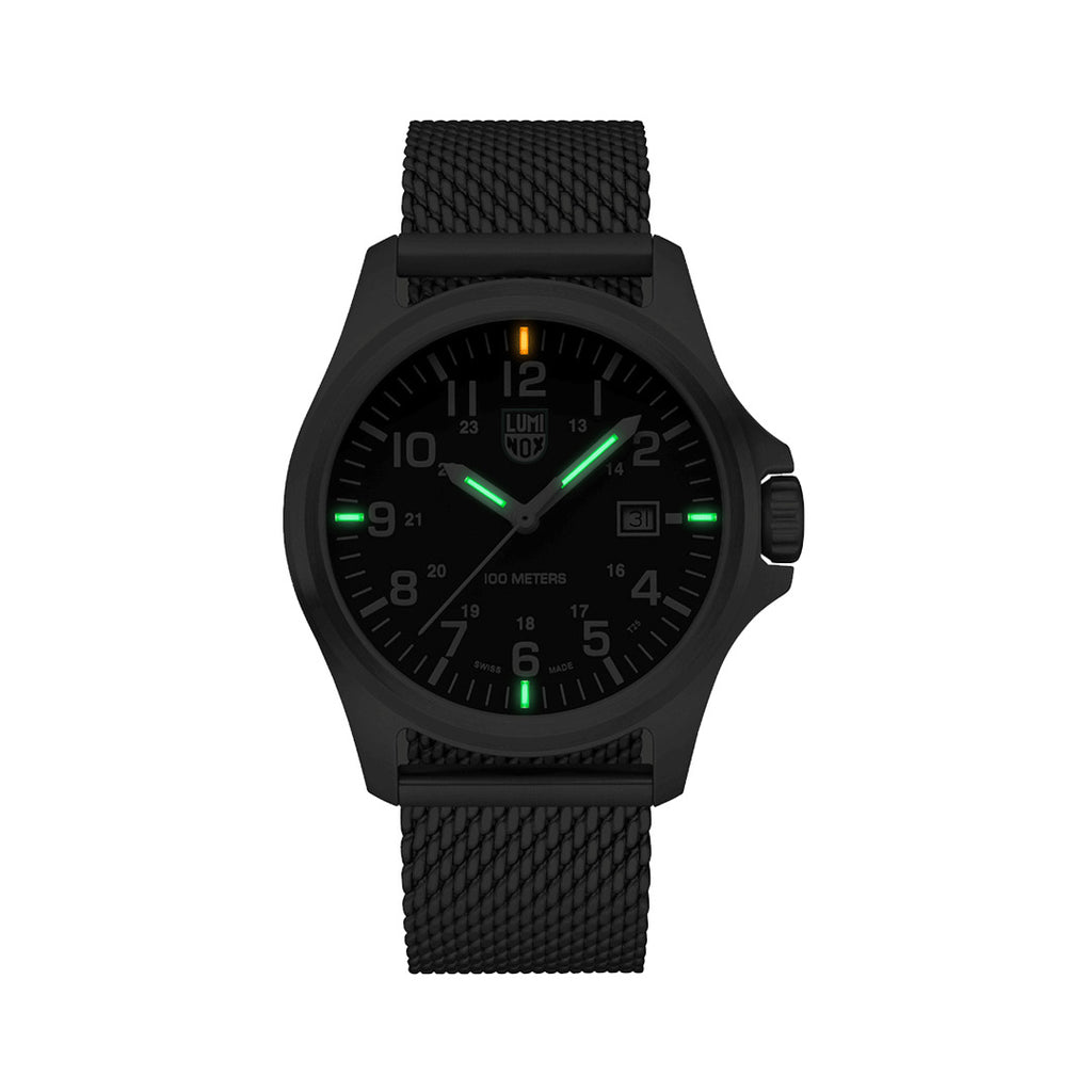 The Patagonia Steel is a classic timepiece combining rugged yet simple styling with a clean modern look that takes you seamlessly from the field to the boardroom. Housed in a 43mm stainless steel case, it is water resistant to 100 meters. In addition, it features an instantly-readable black dial with white numbers and comes with a black PU strap adorned with a stainless steel signature buckle. This watch is equipped with the proven Luminox Light Technology lighting system. "Always Visible", self-powered, for up to 25 years.