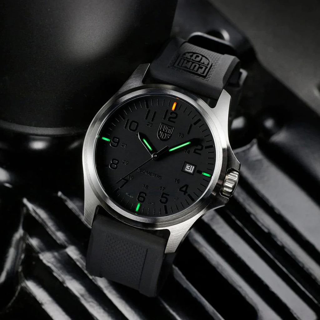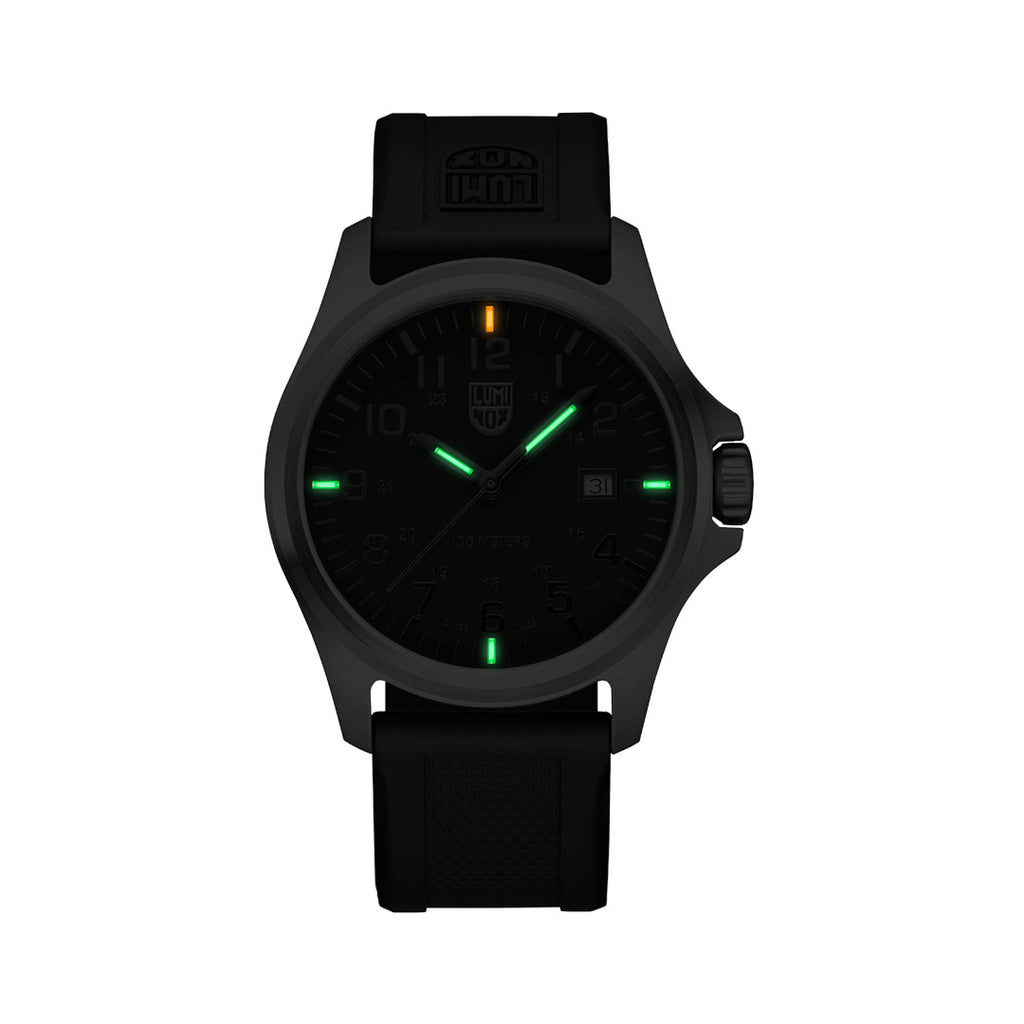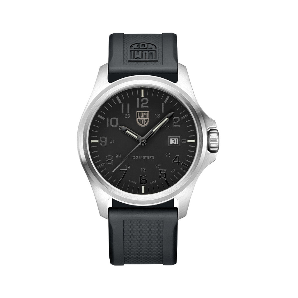 The Patagonia Steel is a classic timepiece combining rugged yet simple styling with a clean modern look that takes you seamlessly from the field to the boardroom. Housed in a 43mm stainless steel case, it is water resistant to 100 meters. In addition, it features a black-out dial and comes with a black PU strap adorned with a stainless steel signature buckle. This watch is equipped with the proven Luminox Light Technology lighting system. "Always Visible", self-powered, for up to 25 years.