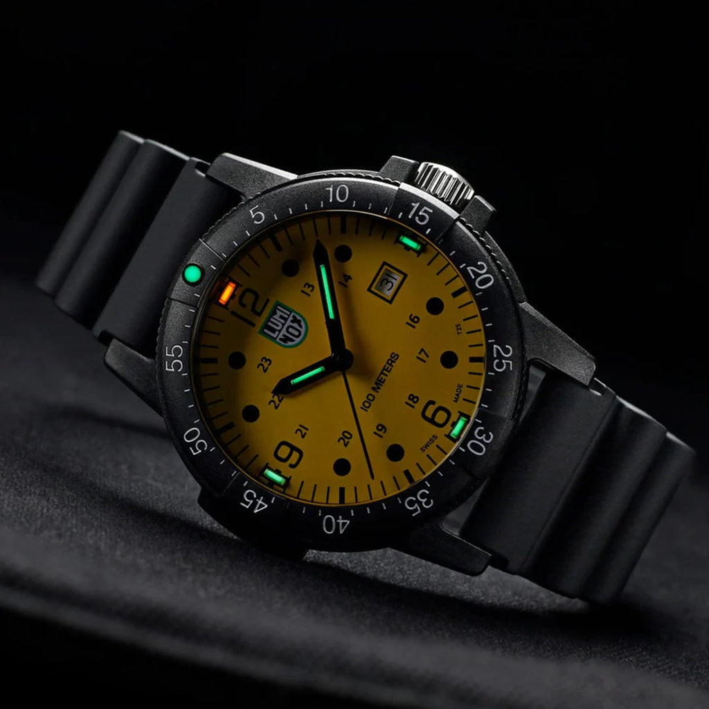 The Sea Bass watch features an impressive 44mm CARBONOX™ case and water resistance up to 100 meters. The bright yellow dial provides an additionnal highlight. Its proven Luminox Light Technology lighting system guarantees self-powered readability in the night. "Always Visible" for 25 years.