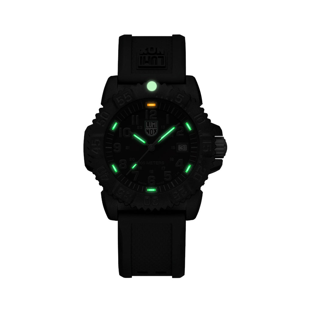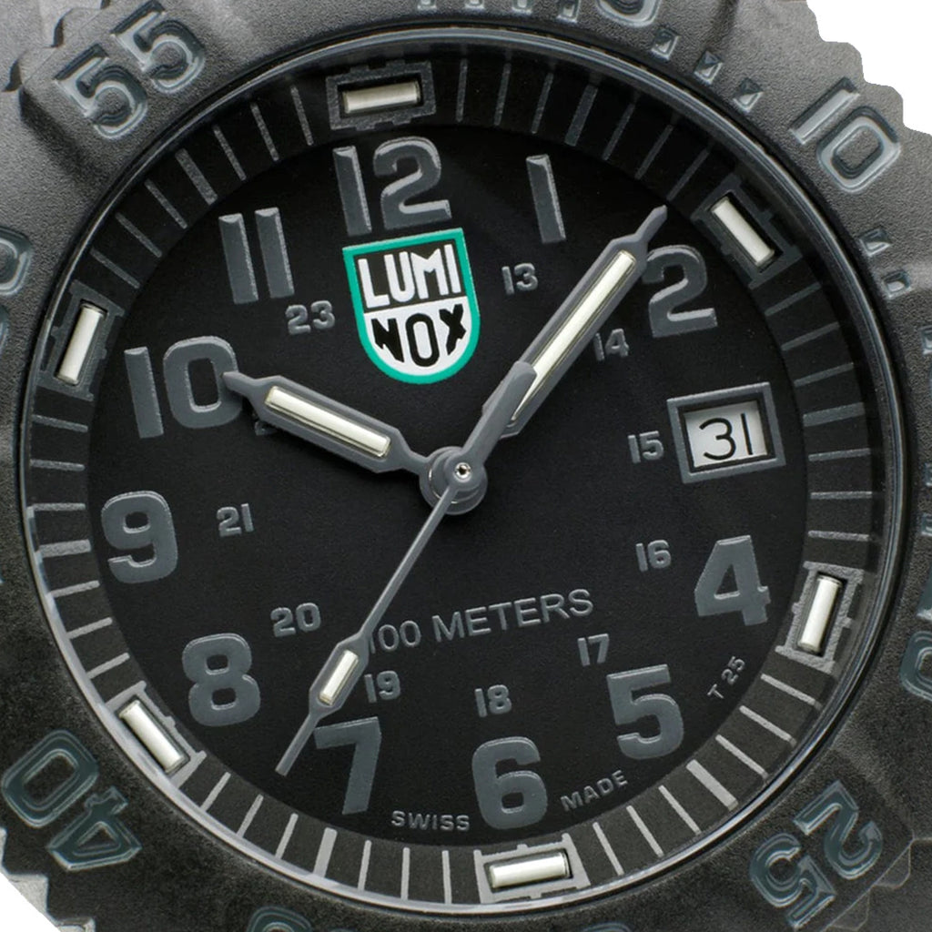 The Sea Lion is housed in a 38mm CARBONOX™ case and its design is captivating due to its pronounced "turtle shape". This watch is unique thanks to its protected crown and dive bezel. It is water-resistant up to 100 meters,and comes equiped with a Black PU strap adorned with a stainless steel signature buckle.Its Luminox Light Technology lighting system provides self-powered readability in any situation. "Always Visible", for up to 25 years.