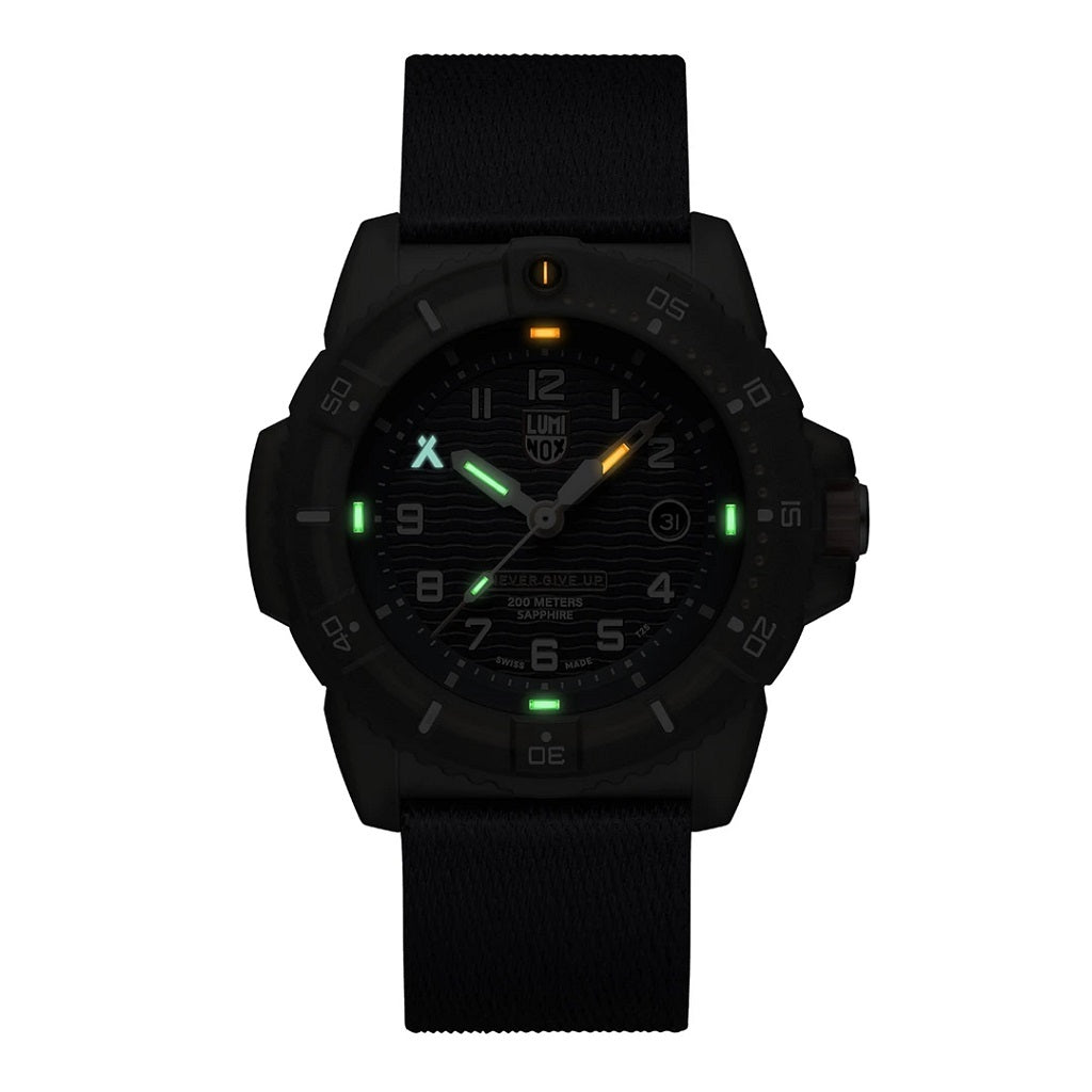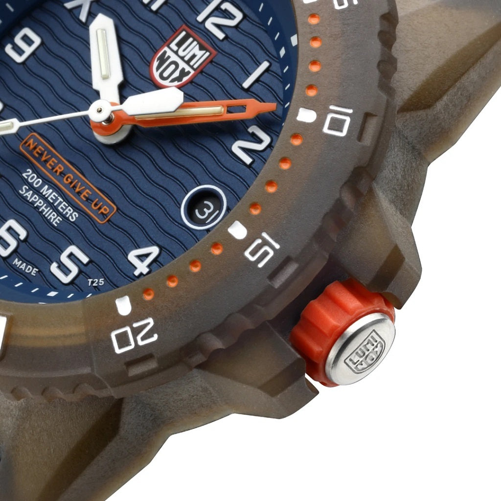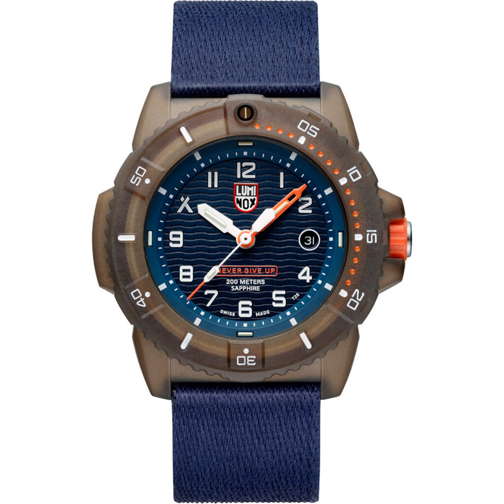 Bear Grylls, the most famous survivalist in the world, has travelled the planet and seen first-hand the monumental devastation caused by climate change. Together with Luminox, he is making a commitment to the future of our planet with the creation of the new Luminox X Bear Grylls Survival ECO watch. This limited edition watch features a case, bezel and strap made from 100% recycled ocean-bound plastics