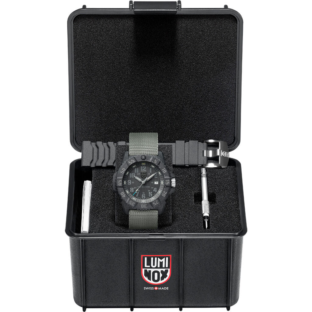 Crafted with a signature Carbonox Case, the limited edition Master Carbon SEAL series watch is 6-times lighter than steel and 3-times lighter than titanium; offering brilliant freedom of movement on land or sea. Refined details like an antireflective sapphire crystal, highly durable webbing band, a brush stainless steel buckle and Luminox self-power dial illumination make this timepiece a seamless combination of style and performance.