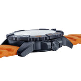 The Navy SEAL Foundation 3250 'Back To The Blue' watch celebrates the return of Navy SEAL operations to their aquatic origins after two decades of primarily land and desert missions. This robust wristwatch features a striking combination of shadowy tones and metallic accents, boasting a 45mm stainless steel case plated in IP black with a fiberglass compound uni-directional bezel. The Navy SEAL Foundation logo is engraved into the black plated stainless steel case back, which is screwed down to enhance water resistance. With up to 20 ATM, 16 Luminox Light Technology tubes, and a Swiss Quartz movement, this timepiece is not only stylish for everyday use but also a reliable companion in any environment, whether above or below water.