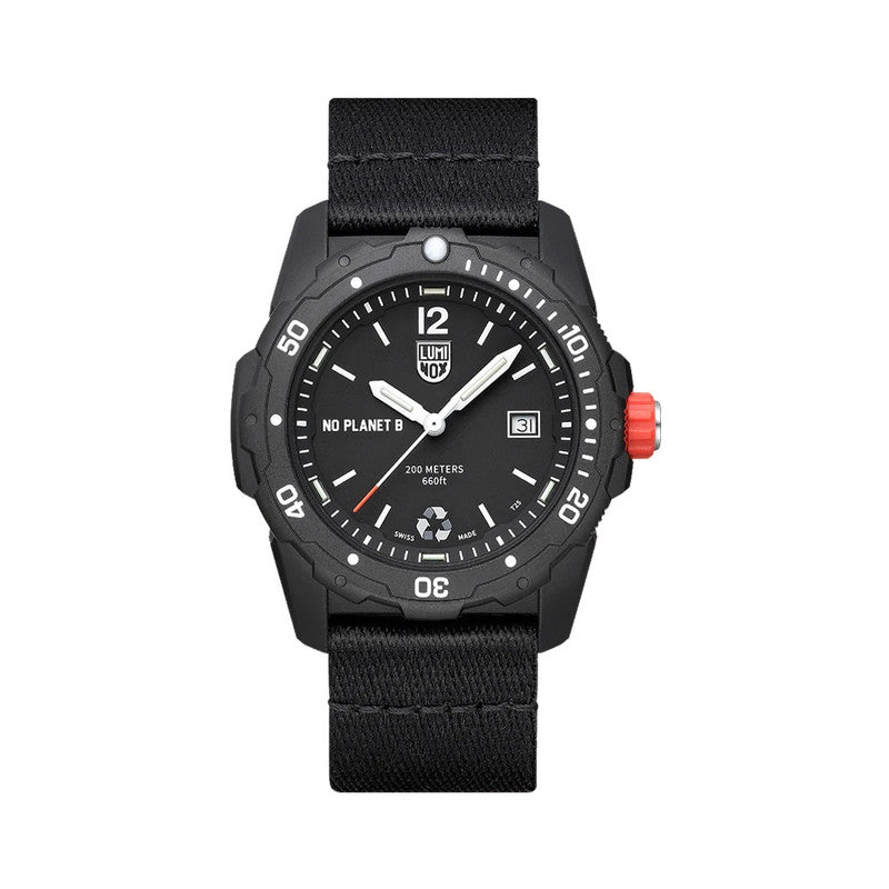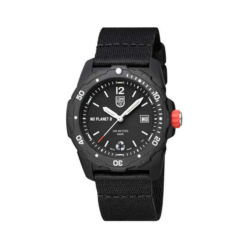 This revolutionary timepiece combines Luminox’s precision watchmaking with Bear Grylls' adventurous spirit and the innovation of tide ocean material, while simultaneously championing environmental conservation. The 42mm case and the strap are made from 100% ocean plastic collected in partnership with #tide. The black strap has the message – “I USED TO BE A BOTTLE” printed on the inside of the strap, reminding the wearer of its origin. The watch features a Swiss Quartz movement, 200m water resistance and the Luminox Light Technology. The case back has a unique ocean design with the mantras ‘EVERY SECOND COUNTS’ and ‘NEVER GIVE UP’ engraved alongside the Luminox, Bear Grylls and #tide logos. The strong and emotional phrase ‘NO PLANET B’ is visible on the dial and serves as a stark reminder of the seriousness of our environmental crisis and the need to make drastic changes now.