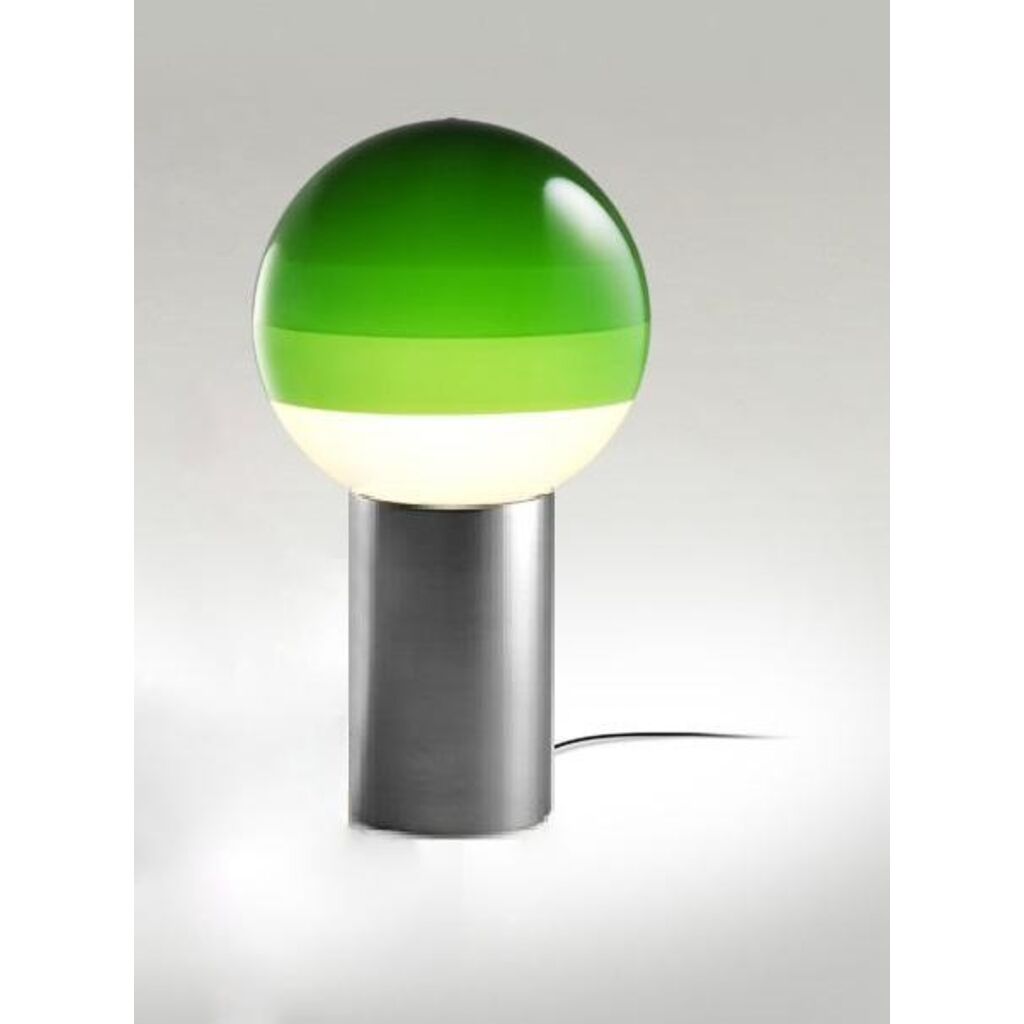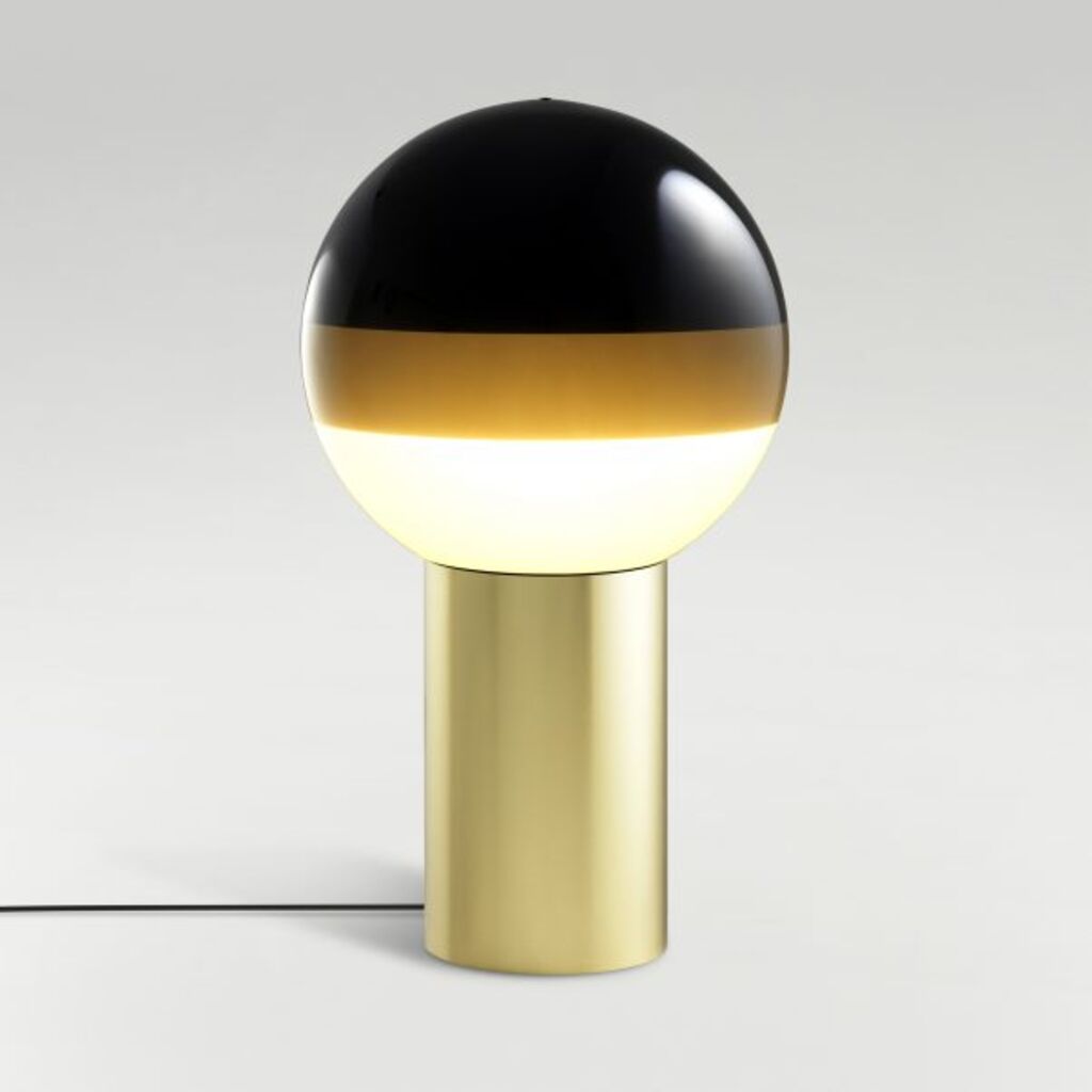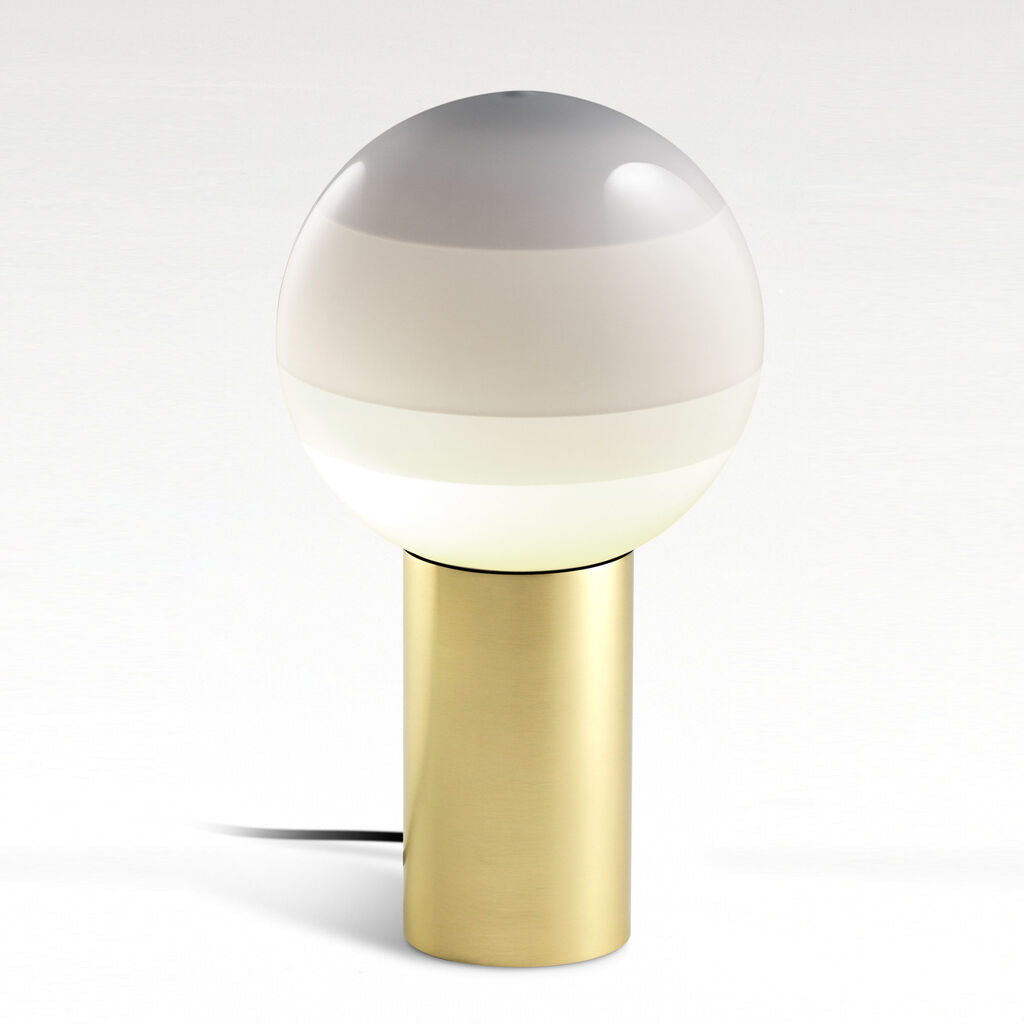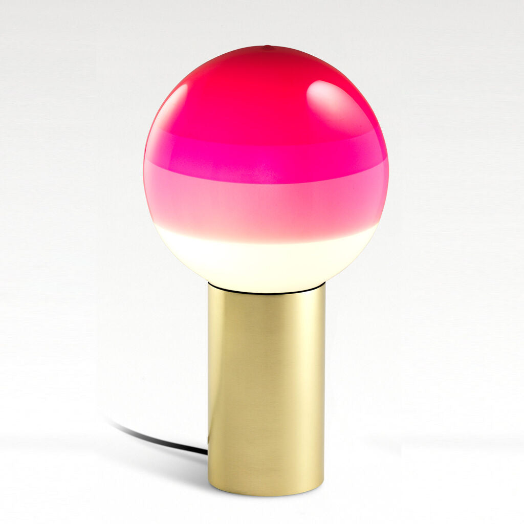 Beyond its function as a lamp, the Dipping Light seeks to excite. When it’s turned on, its different shades of paint sift the light, creating a magical ambient effect. When it’s off, its colored glass sphere is an object charged with beauty, and eye-catching design piece for a shelf, bedside, or table. Jordi Canudas is an alchemist of light. He experiments with it, seeking always to be surprised and learn from it. He wants to capture the essence of light. With this goal in mind, the Dipping Light was created as yet another experiment – dipping a lit bulb into paint several times – with the end result of this table lamp. The various layers of paint draw concentric circles and capture the light, moderating its intensity. The paint becomes the shade, colouring and texturizing the light. A brass o graphite base is added for support. This artisanal process will make each lamp a unique and exclusive creation.