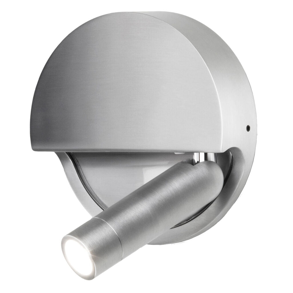 From Marset and designed by Daniel Lopez, the Ledtube Round Wall Light is a positionable wall lamp that incorporates energy efficient LED technology and a 24-degree lens that directs a sharp beam of light. This fixture features an adjustable head and a honeycomb grill in the lens to trap peripheral light and avoid glare. Its modern design combines simple shapes made of injected aluminum and a frontal part made of transparent polycarbonate. Ledtube's automatic on/off technology makes it easy to use: pull the lamp out of the base element to turn it on and slide it back into place to turn it off.