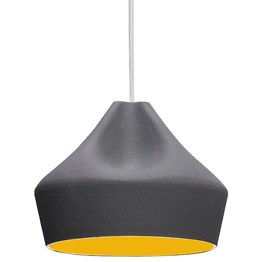 The idea behind the Pleat Box is a sophisticated combination between a digitally designed crease in a piece of cloth and a silhouette that is applied to a ceramic base. The outer part of the lamp is offered in white ceramic, black, terracotta, and grey– the direct result of recycling different enamels. The interior is available in brilliant white enamel, which enhances the luminous light from the lamp, or 24k gold, which generates an extremely warm light.
