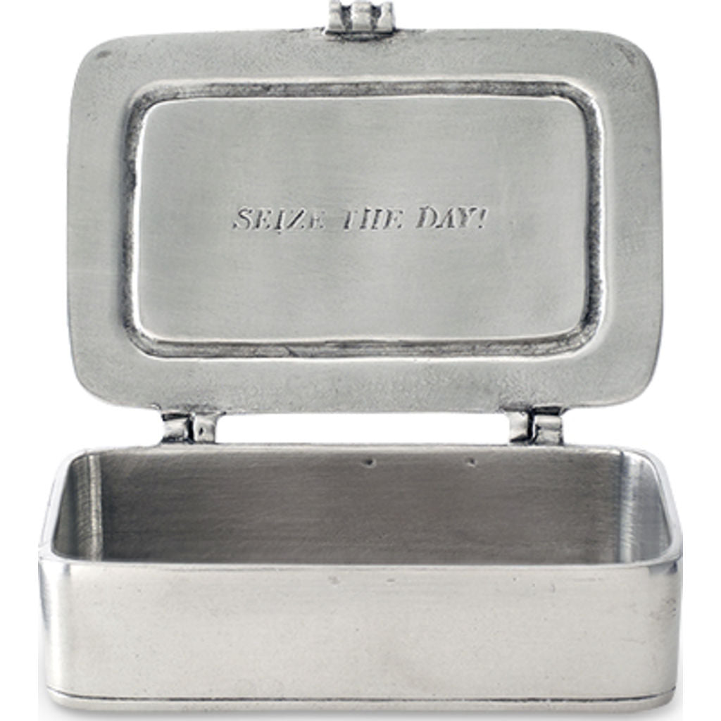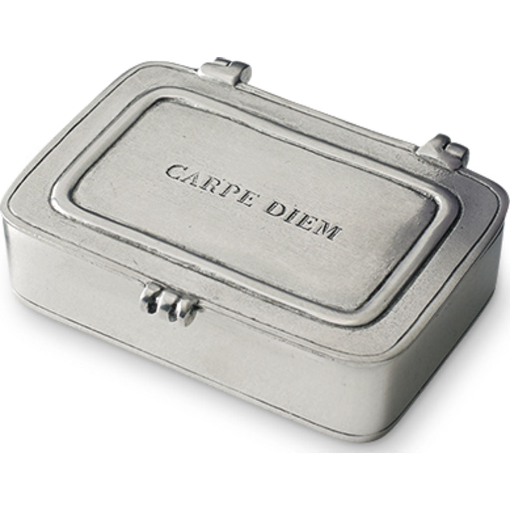 The Match Large Carpe Diem Box is the perfect gift for anyone in your life! This beautiful Pewter box is handmade in northern Italy. It is a great addition to your home or office to remind you to seize the day!