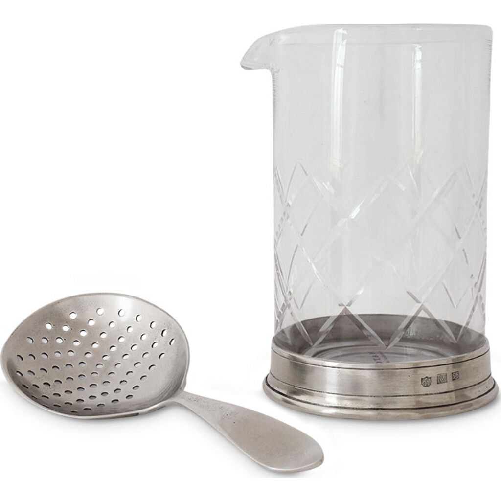 The Match Mixing Glass & Cocktail Strainer Set has a classic form that harmonizes with both traditional and modern settings. Match Mixing Glass & Cocktail Strainer Set are made from a rich combination of brilliant crystal and warm handcrafted pewter, a nice addition for your bar set. This Match pewter contains 95% of the highest quality tin, absolutely no lead, and completely food safe. FDA approved and requires little or no care making them suitable for everyday use.