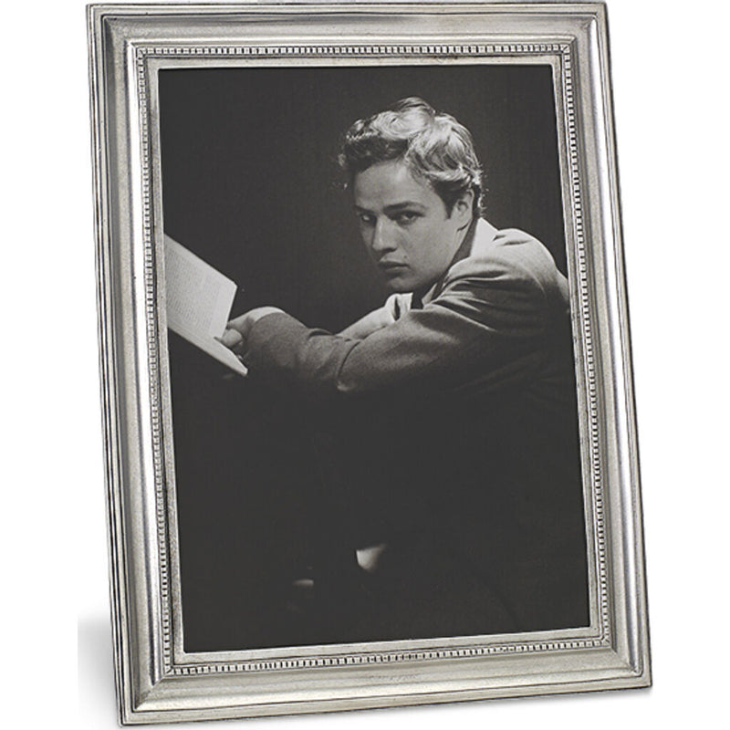 Match Pewter Toscana Rectangle Frames beautifully display your most treasured memories in luxury Italian crafted pewter. The Toscana Frames are finished with a unique inner border of square beads that adds a simple intricacy to this timeless frame. Each Match Pewter Picture Frame is handmade with an alloy that is lead-free, FDA approved to be safe and requires little to no care. Each Frame is stamped with the symbol from the region of Italy where it was made.