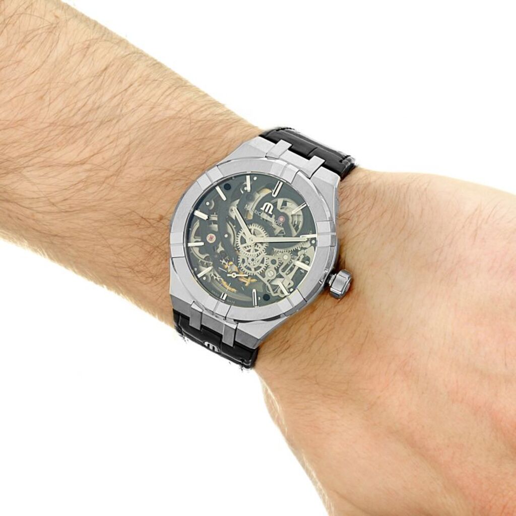 In a freshly restyled AIKON case, Maurice Lacroix has fitted a new manufacture, openworked, automatic caliber of unique design. True to its vocation of manufacturing high quality timepieces at an affordable price, deeply rooted in urban and contemporary culture, Maurice Lacroix presents AIKON Automatic Skeleton. In the spirit of contemporary creation, Maurice Lacroix has made AIKON Automatic Skeleton the sum of many new features. In a wide AIKON case, reshaped in order to house this new type of movement, Maurice Lacroix gives the manufacture ML234 calibre its maiden voyage. It is openworked according to a whole new pattern, designed purposefully for this timepiece. At the crossroads between two Maurice Lacroix ranges, AIKON Automatic Skeleton blends the AIKON design cues with the watchmaking substance characteristic of the Masterpiece collection.