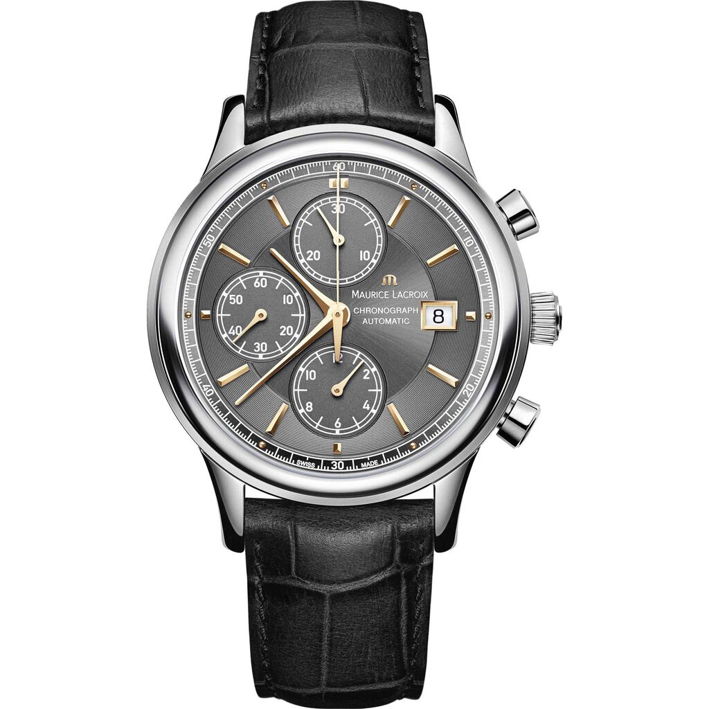 Maurice Lacroix Men's Les Classiques Chronograph Automatic Watch | Black/Gold Leather