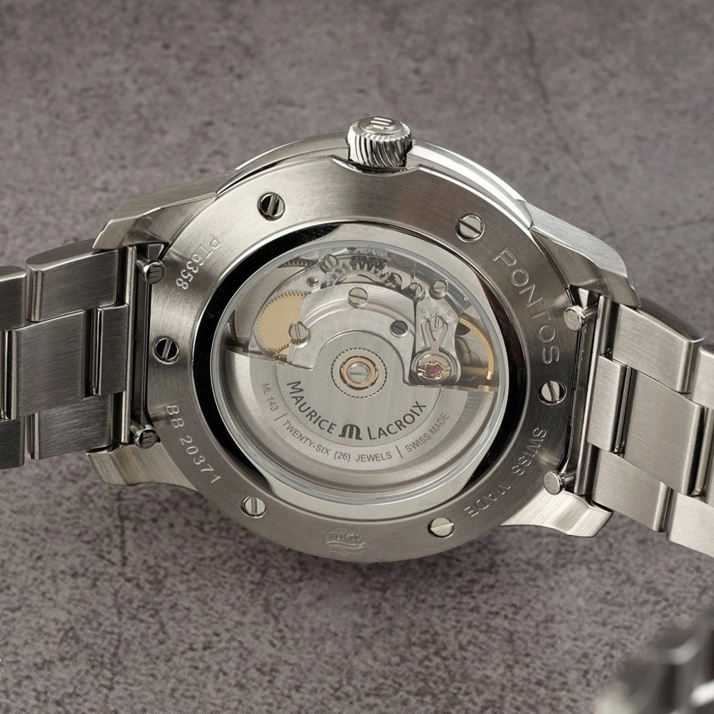 - CASE BACK: Open case back with sapphire glass and anti-reflective coating
