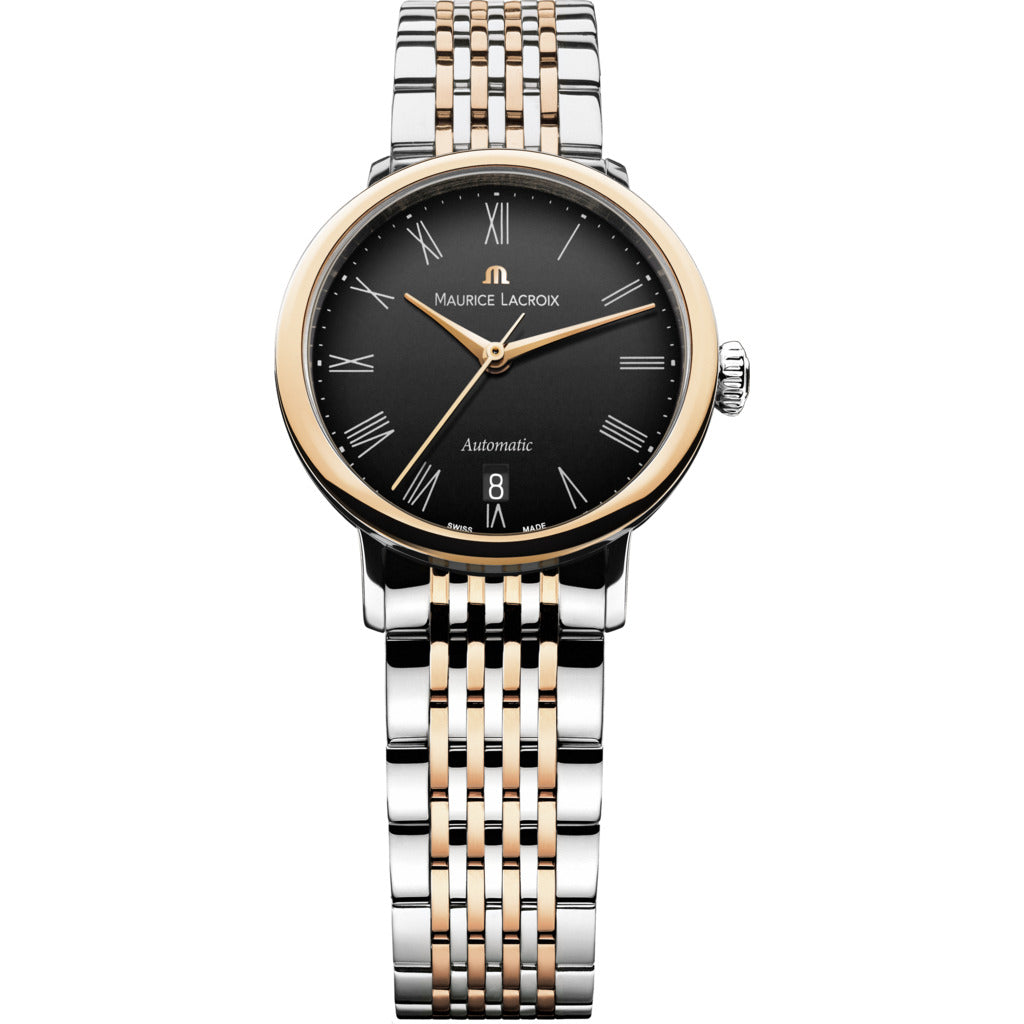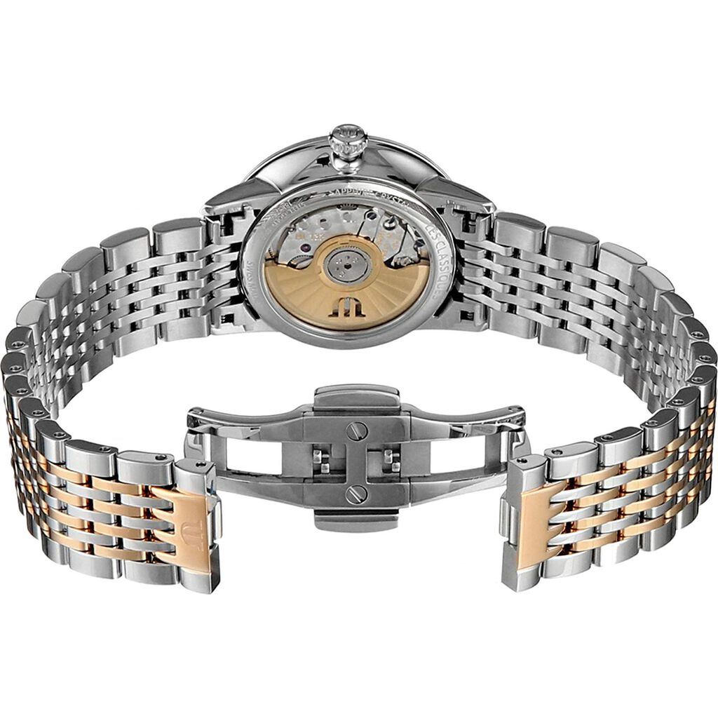 Style, Tradition, and Reliability. The Maurice Lacroix Women's Les Classiques 18k Automatic Watch is made of a stainless steel case with rose gold links. With minute markers around the outer rim and a transparent case back, the Maurice Lacroix is stylish yet highly functional.