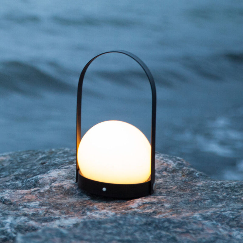 The Carrie LED Lamp embodies what makes Scandinavian design great: minimalism, innovation, love of light, and the indefinable "hygge". The portability and diffuse glow make it useful for both indoor and outdoor lighting. Designed by Copenhagen-based Norm Architects as a portable, lightweight lamp, the Carrie LED Lamp is unique for its multiple uses and mutability. With a sleek, functional handle and a warm orb of light nestled gently in a basket-like base, the lamp is useful almost anywhere; even on the go, as it is cordless and comes with a USB charger. Move it from your office to your bedside table, to your evening picnic in the park, and in your bicycle basket as you ride home. The cosy light created by this special piece of lighting brings comfort and sophistication wherever you are. The new line extension comes in a brushed brass finish, bringing an additional sense of richness and elegant texture to the sleek lines of the lamp.