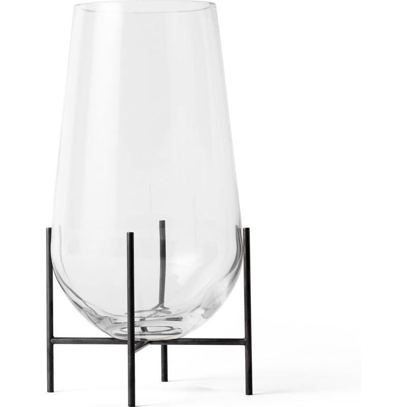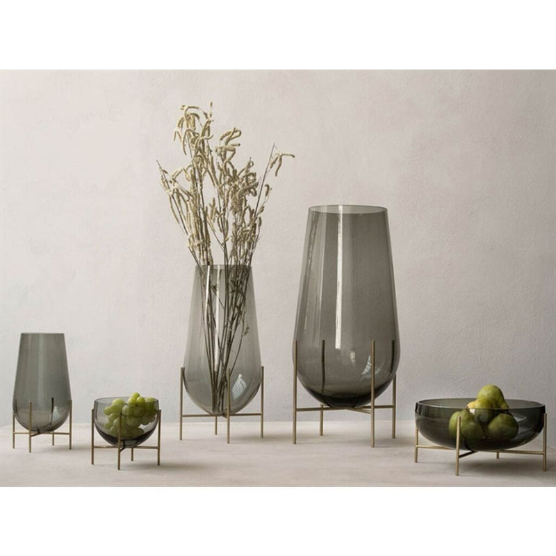 The Echasse vase from Menu is Theresa Rand's contemporary take on traditional, elegant glass vases. Rand aims at creating objects that are both poetic and functional. Echasse's drop-shaped design was inspired by test tubes used in laboratories, and the French name meaning "stilts" refers to the slender brass base that elevates the glass vessel off the table top. Thanks to the flat bottom, Echasse vases and bowls can also be used without the brass base.