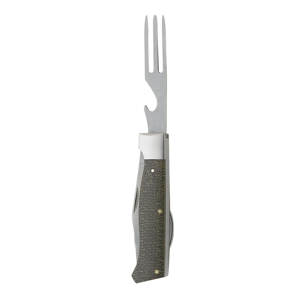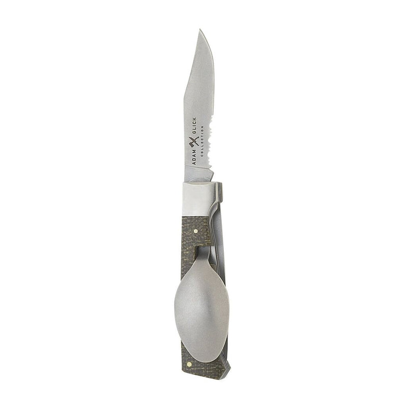 Our folding Camp Utensil is the essential tool for dining outdoors, its compact design houses a full-sized spoon, steak knife and fork. Of course, no design for the campsite is complete without a bottle opener, so we included that too. The utensils are made from high grade surgical stainless steel.