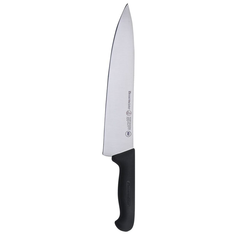 The Messermeister Four Seasons 10” Chef’s Knife is the workhorse in every kitchen. You'll gravitate towards this knife and find yourself using it for 90% of all your cutting tasks. It has a commercial grade oversized, molded hygienic handle. The stamped blade has been ground down to a thin profile to create a razor sharp edge. You can chop, slice, dice and mince your way through extended cutting tasks without fatigue.