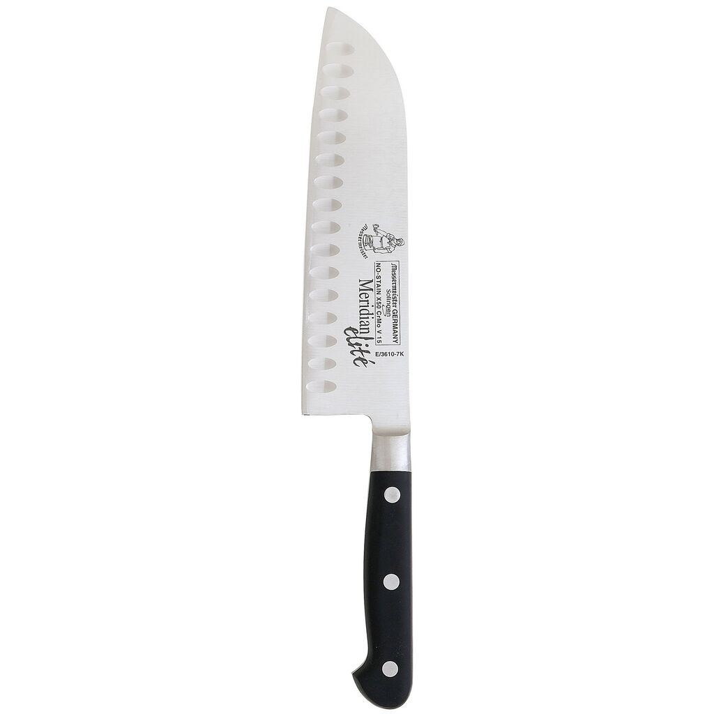 The Messermeister Meridian Elite 6 Piece Magnet Block Knife Set consists of an 8" Stealth Chef's Knife, 8" Scalloped Offset Knife, 7" Santoku Knife, 6" Utility Knife , 3.5" Paring Knife, and an Acacia Magnet Block. This is an exquisite knife block set for any kitchen!