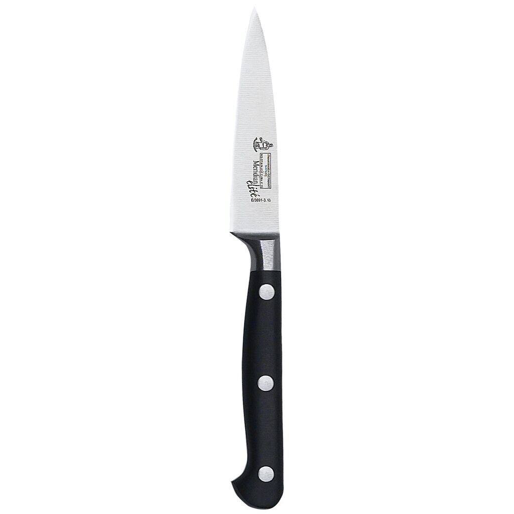 You will find yourself using the Messermeister Meridian Elite Spear Point Paring Knife daily for a variety of tasks requiring accuracy. This knife has a fine edge blade that tapers to a point and is designed to be an all-purpose knife. It's similar to a chef's knife, except smaller. The compact blade and molded handle will facilitate trimming, peeling and slicing of produce.