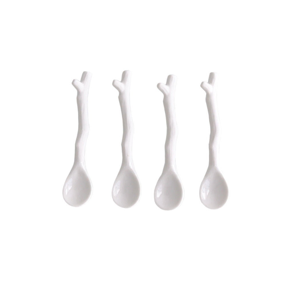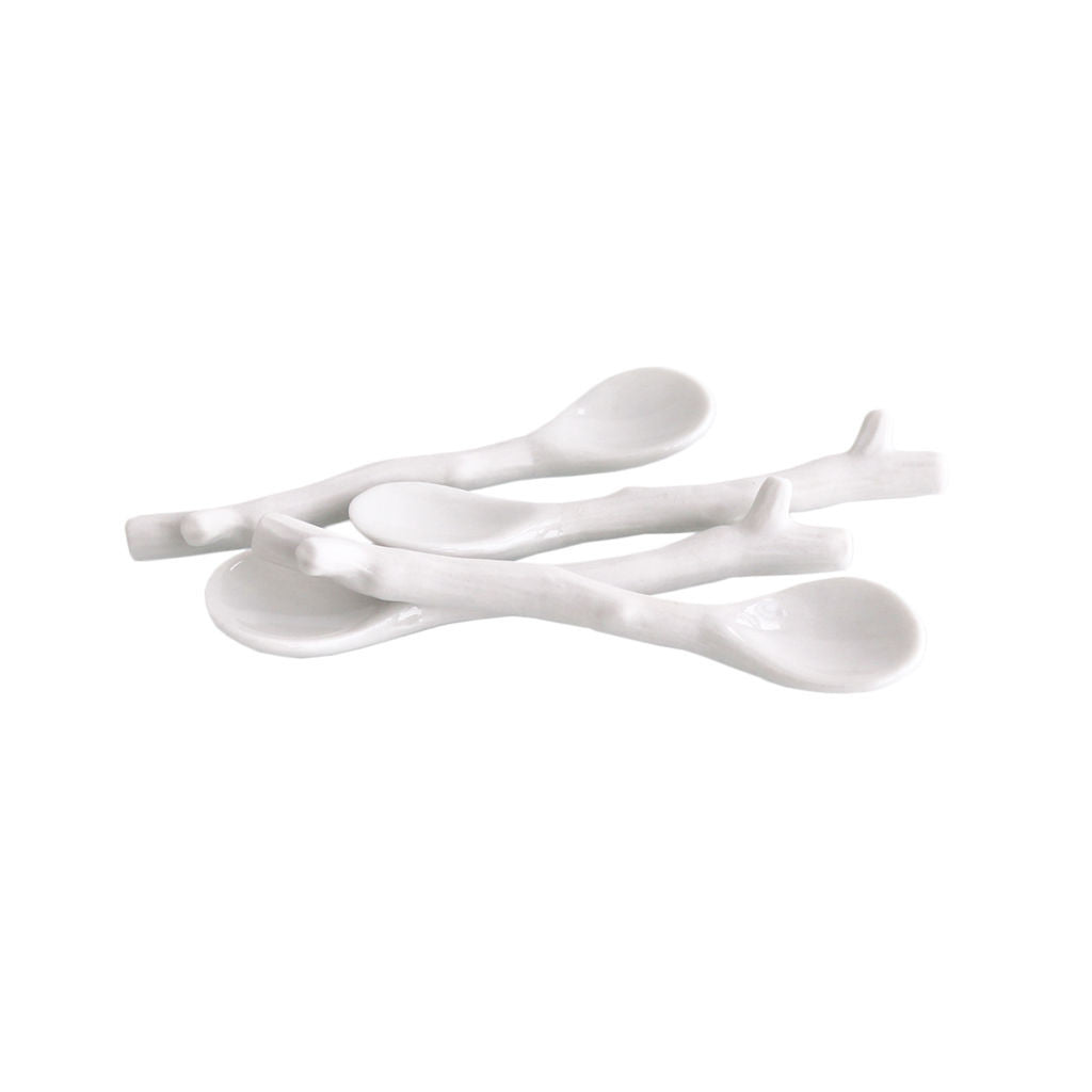 The whimsical Michiko Shimada Small Twig Spoons Bundle Set of 4 will add a fun element to any occasion. The woodland themed spoons are handmade in Brooklyn. Crafted out of white porcelain with a clear glaze on the tip of the spoon. Give to a friend as a gift or keep for yourself and enjoy!