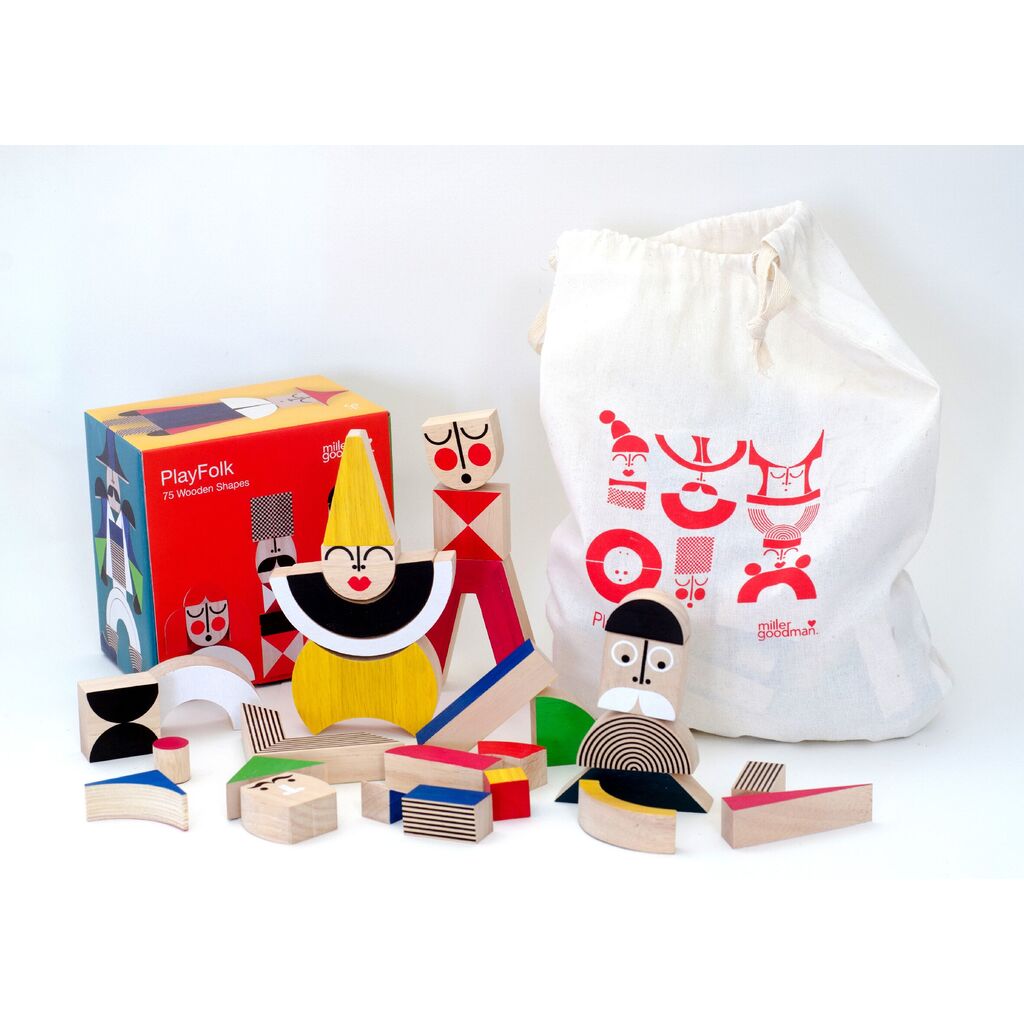 People your world with fun folk. See surprising characters emerge in vibrant costumes as you explore these 75 multi-faced, beautifully crafted, sustainable rubberwood shapes. Hand printed with bold colours and simple patterns, they can be endlessly transformed for hours of playful pleasure for young and old. Illustrations included to inspire. Age 3+