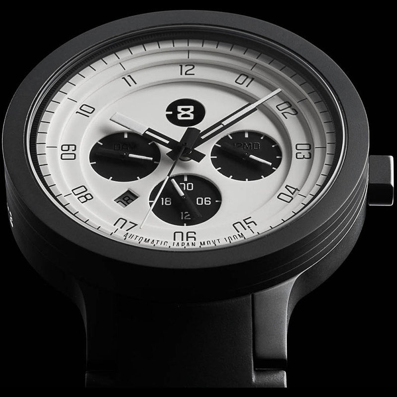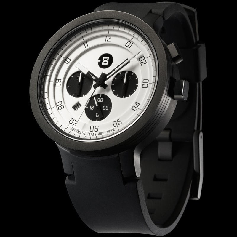 Anyone can wear a watch. But not everyone has the great taste and style know how to wear the elegantly minimalist Minus-8 Layer 24 Black/White Automatic watch. Combining precise watch making techniques with a totally unique and interesting aesthetic, Minus-8 created a masterpiece that leaves all other watches in the dust. A proprietary design of six layered 316L bonded steel bands produces a visual stadium effect from the exterior of the watch face to the interior. The balance wheel's movement is visible through the clear sapphire crystal face back. A design this superb can't be worn by just anyone.
