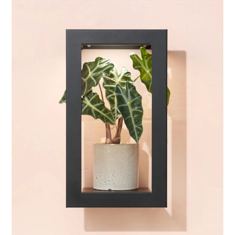 Light the way to a greener home. Our Portrait Growframe beautifully frames and thoughtfully nourishes low-to-bright light seeking plants. It is the vital solution for creating a lush plantscape in sun-deprived spaces. Simply mount, add plants and set the timer. Light is delivered daily to keep your plants happy and brighten your home.