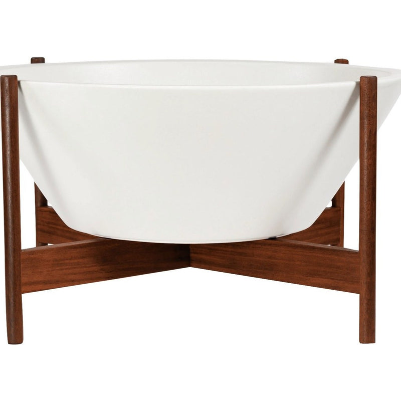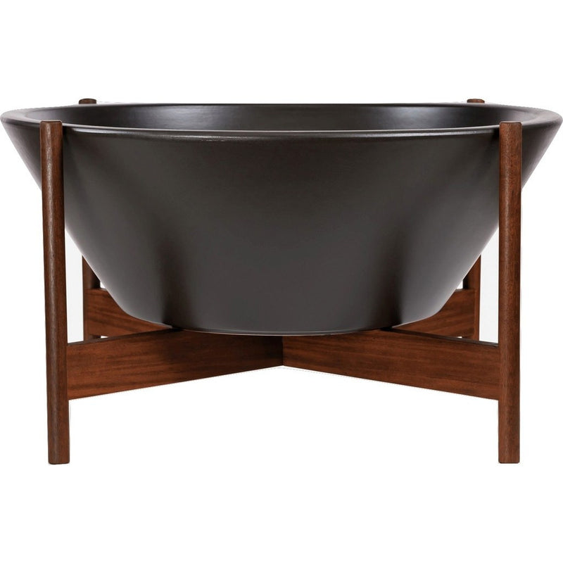 The Large Wok with Walnut Stand is a simple, gorgeous piece of decor, a ceramic piece that will enhance the style of any room you put it in. Made with walnut wood and powder-coated steel, the combination of matte ceramic with elegant, rich wood makes for an elegant aesthetic. Suitable for use inside and outside, this wok will become an indispensable part of the design of your home.