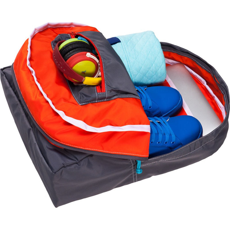 Mokuyobi created a new classic with the Big Pocket Backpack in Orange and Charcoal. Coated with 100% nylon, this simple backpack has two storage compartments and a padded laptop sleeve. The large front pocket also features two smaller zip compartments for storing smaller items.