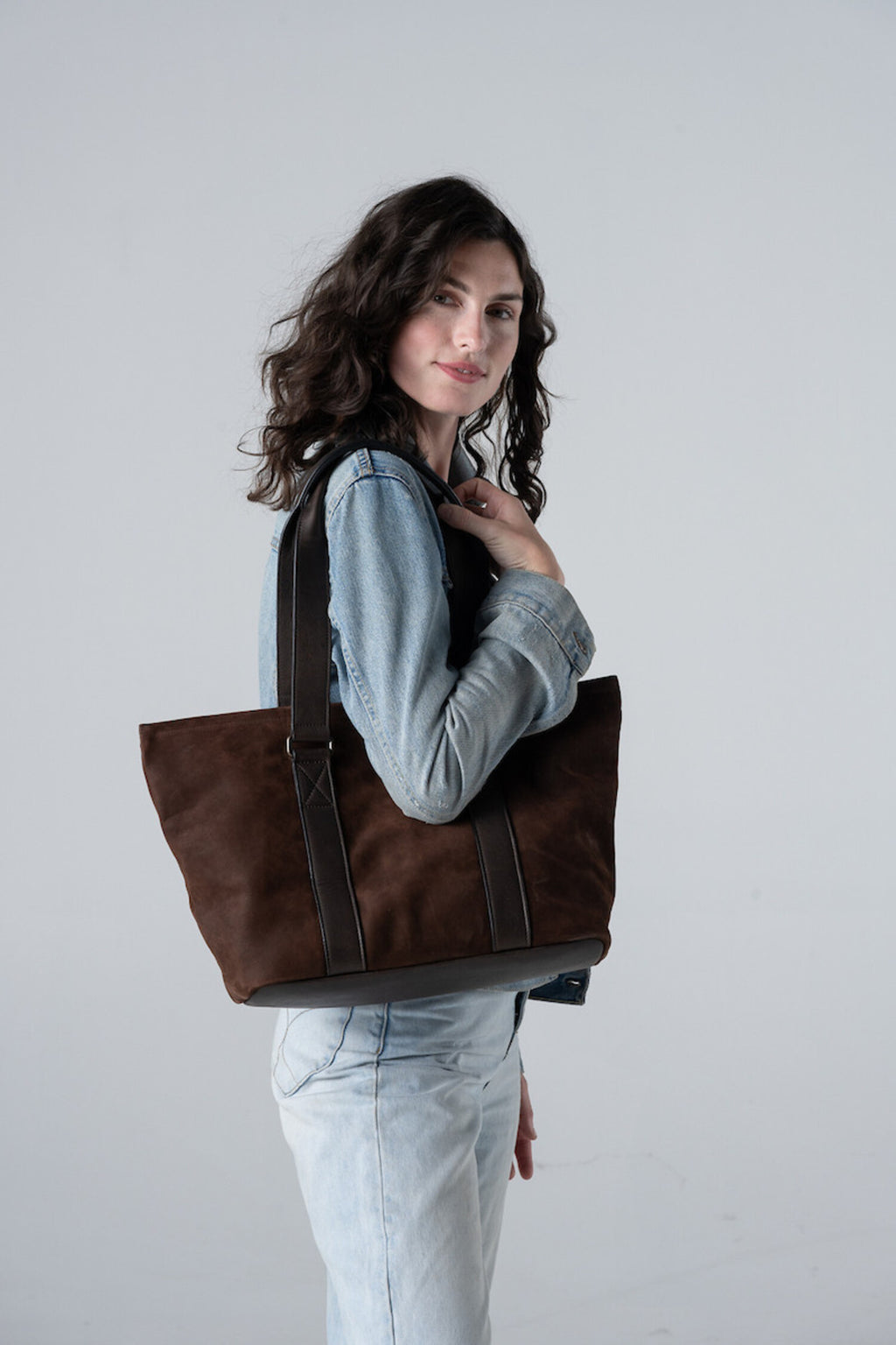The Moore & Giles Reclaimed Small Zip Tote combines style and functionality in a compact design. This tote offers a front-facing zipper, comfortable handles, and a drop-in interior pocket, making it perfect for everyday essentials with a streamlined look. Its petite size makes it easy to carry while retaining the classic features of the larger version.