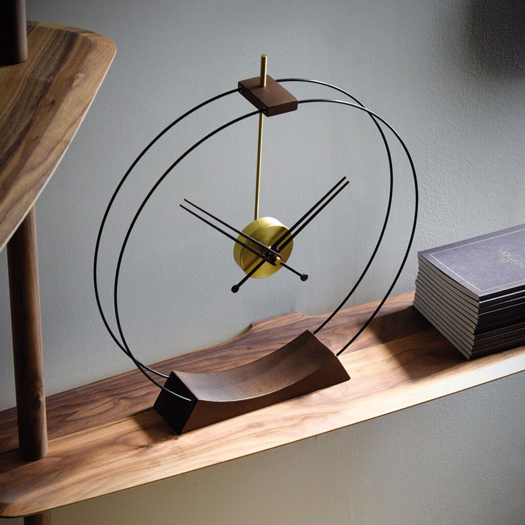 If you are looking for a modern clock that matches the minimalist decoration of your home, without a doubt the Nomon Air G Clock is a candidate without equal. It is a desktop clock with a wooden base and its body is dramatically represented by two black fiber hoops.