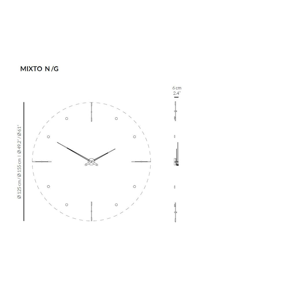 The Mixto Wall Clock from Nomon provides a minimal feel to a living space. Made using high quality materials, the center box is made from either a sleek chrome steel or brass polished metal. Hands and needles consist of a walnut or wenge wood with steel time signals.