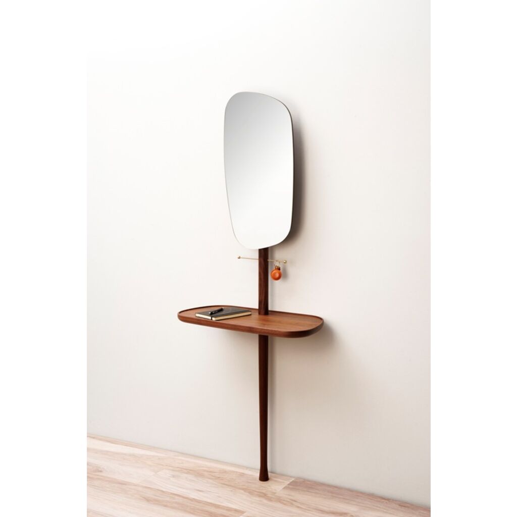 Furniture for hallway or dressing areas, to place your keys and accessories when arriving home. Timeless piece due to its minimalist and warm design. The original gold rod sophisticates the traditionality of the piece.