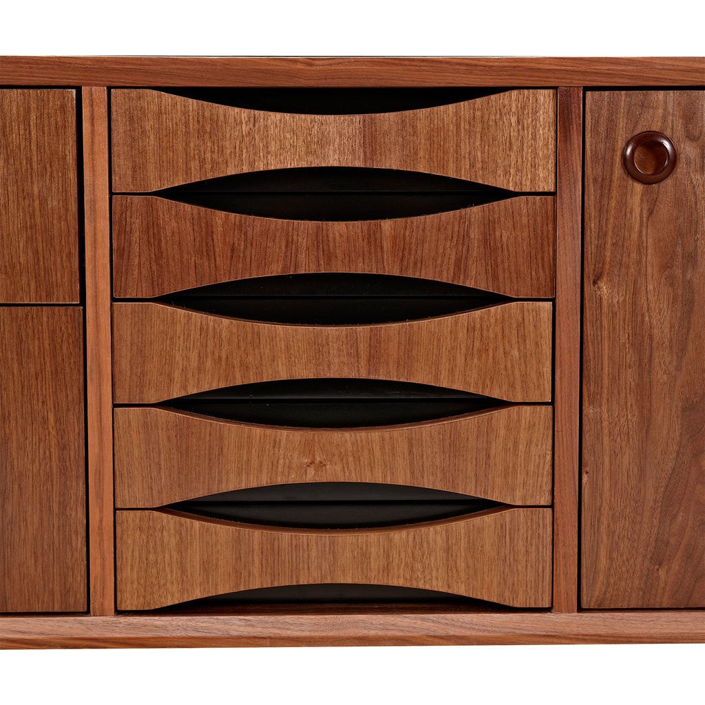 Bring warmth and a natural feeling to any room of your house with this sideboard from NyeKoncept's Hanna Collection. This piece seamlessly blends the aesthetic of walnut veneer with the modern sensibility of a sideboard. The distinctive grain of the walnut veneer adds character that only natural wood can offer, while the sideboard's design offers ample storage space.