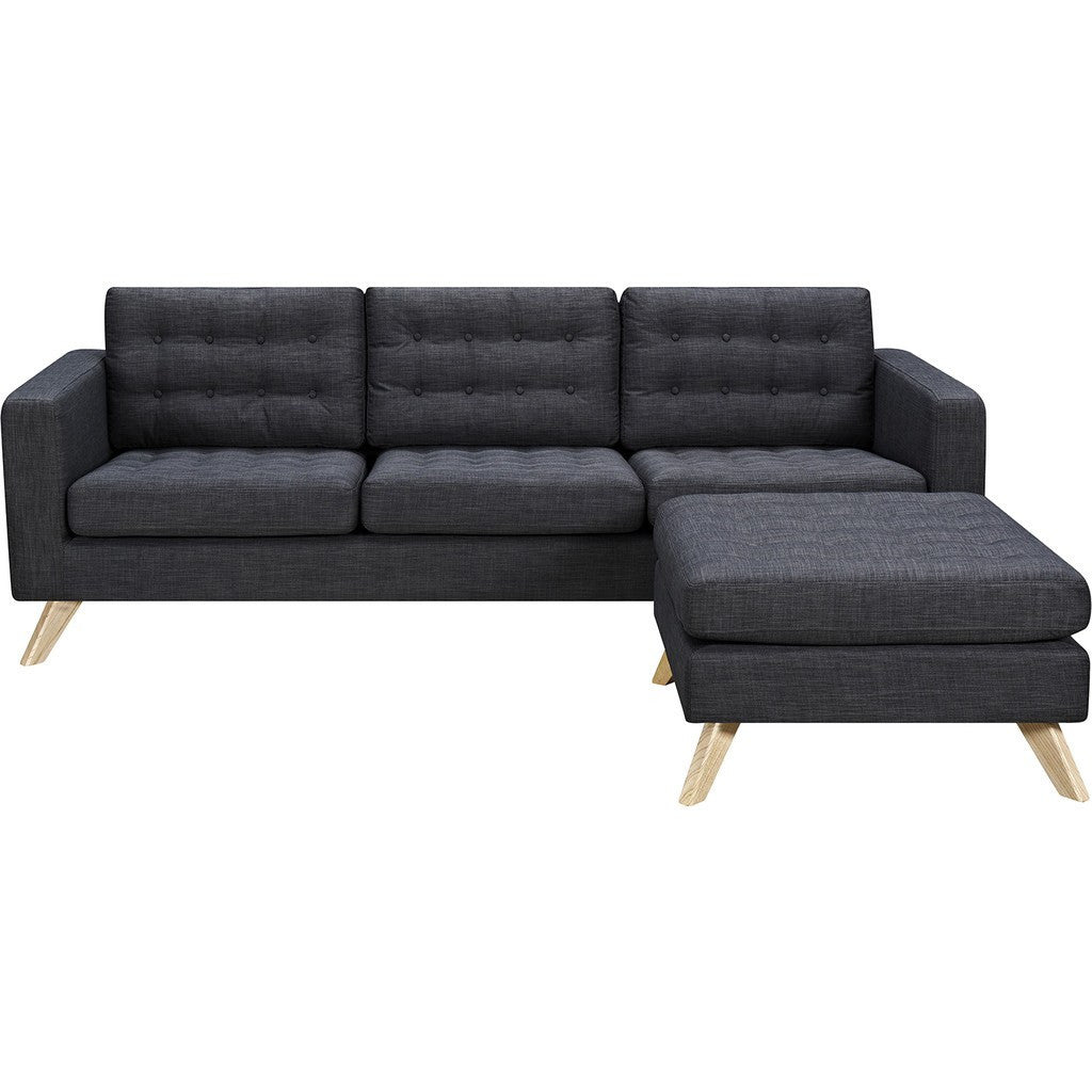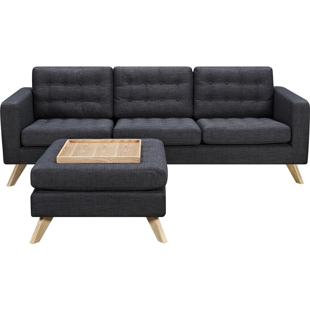 Bring class and quality craftsmanship to your home with the Mina Sofa Set by NyeKoncept. This set, which includes a three-seater sofa, ottoman, and wooden tray, has everything you need to complete your living room or den. To ensure maximum durability and comfort, NyeKoncept makes each Mina Set with CAFR high density foam, woven polyester and solid ash wood. The Mina Sofa Set truly is the ultimate blend of beautiful aesthetic and superior functionality.