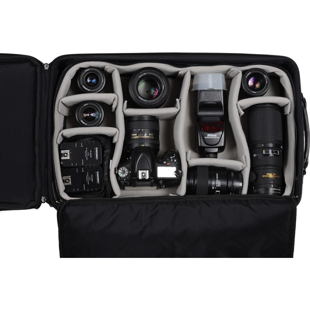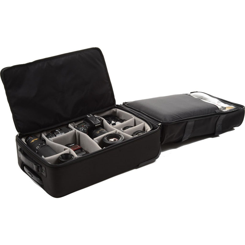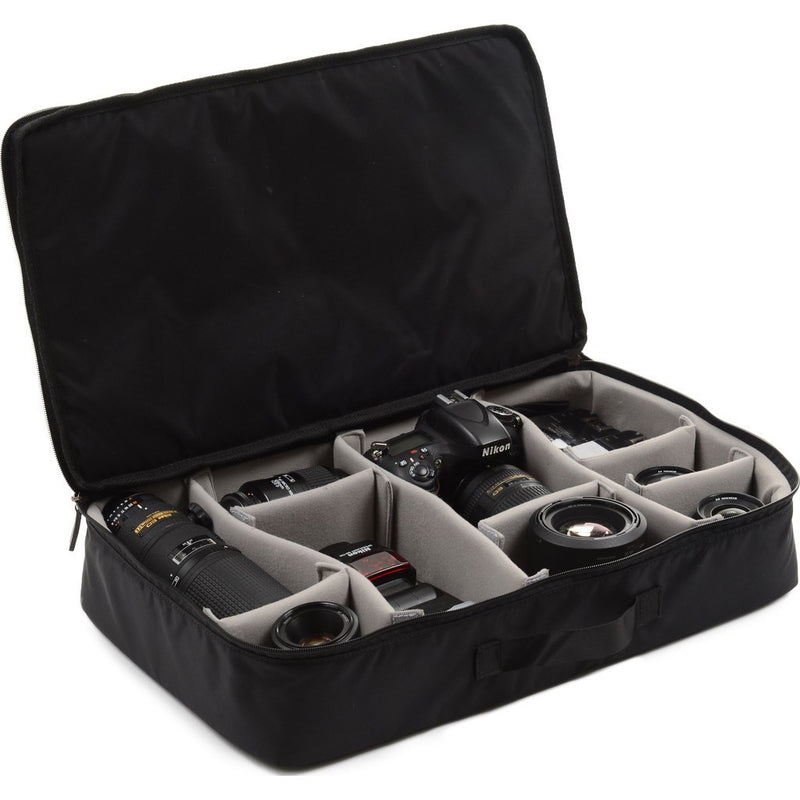 ONA Bags built the Hamilton Luggage Duffel for the traveling photographer. Constructed from ballistic nylon and premium leather accents it functions as a carry-all duffel as well as rolling luggage, all held together with solid brass hardware. While sized to meet carry-on requirements, it holds a remarkable amount with a dual compartment design - a top one for clothes and personal items, and a reinforced bottom one with customizable, padded inserts for camera storage.
