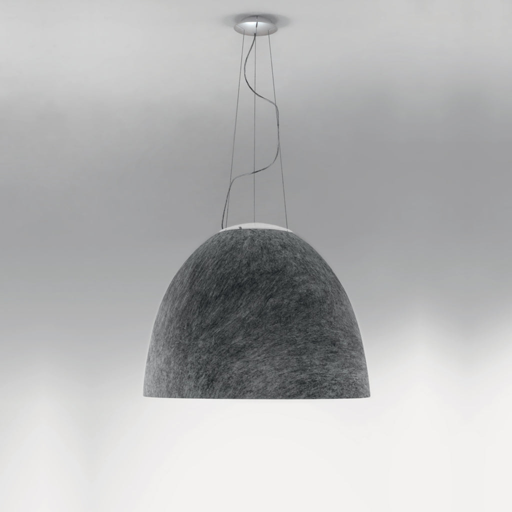 The bestselling appliance Nur, an iconic product from the Artemide collection, is restyled in a new acoustic version. The bell-shaped body is designed to mark the boundaries through light, as well as with ambient sound control. The special material absorbs sound waves and reduces their reverberation time, the body’s geometry enhances the material’s properties by trapping and absorbing sound within.