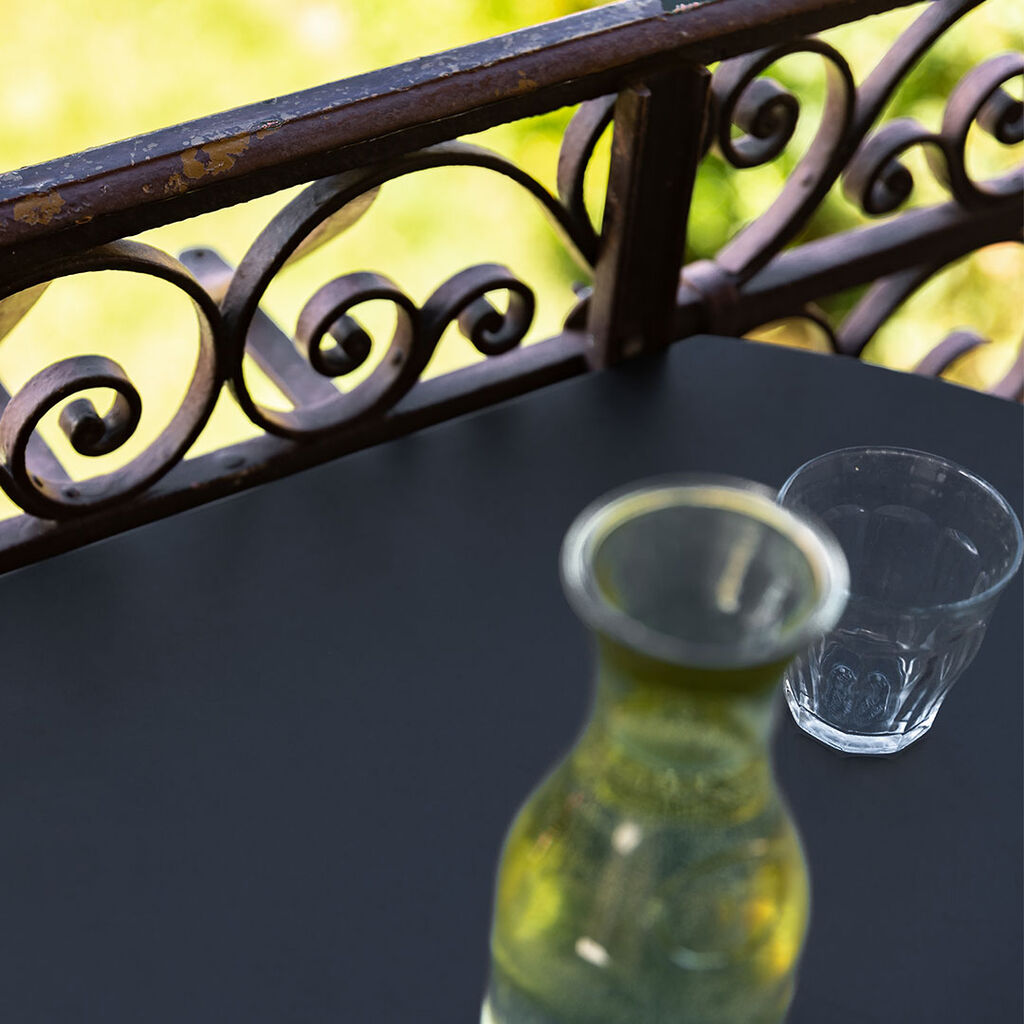 We all have memories of good times spent in cafés, bars, bistros and restaurants. Our Donut collection will help you make more. Designed with cafés and restaurants in mind, these small dining tables can bring a little bistro charm to the home, too, whether in your kitchen, loggia, or out on a patio or balcony. Shown here with a round cutaway tabletop, this table can sit flush against a wall or balcony railing while saving precious space. Great for coffee breaks and meals, either solo or with company.